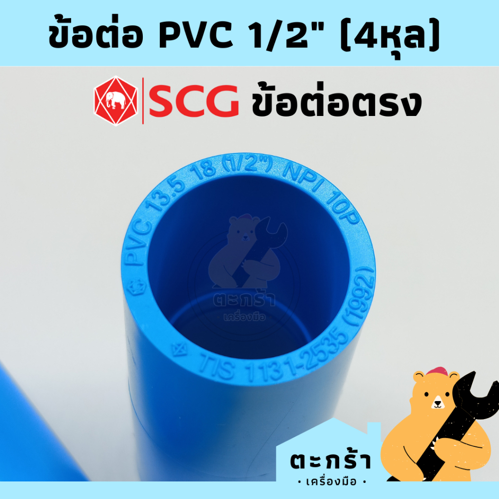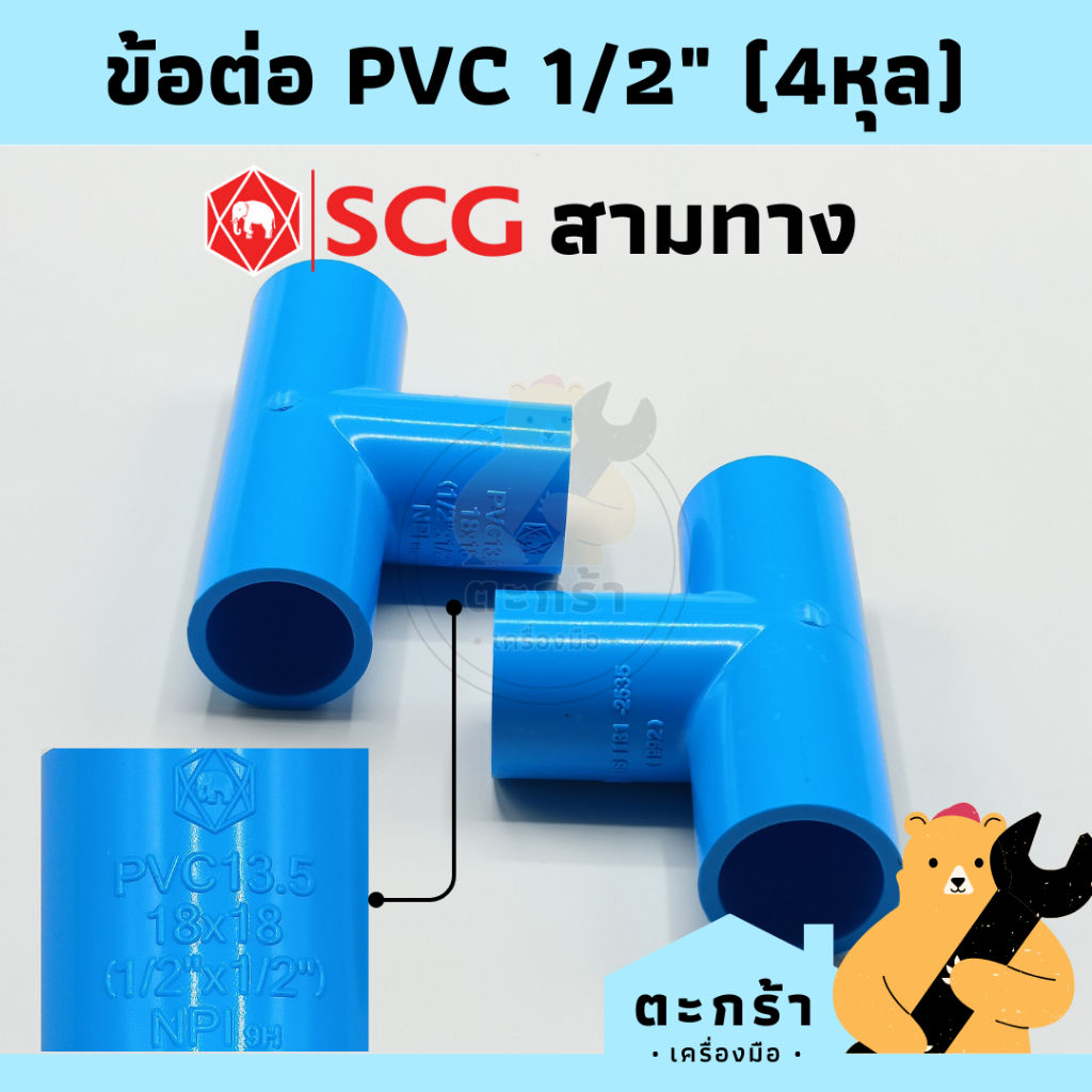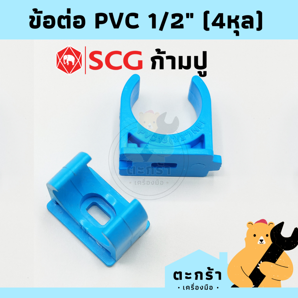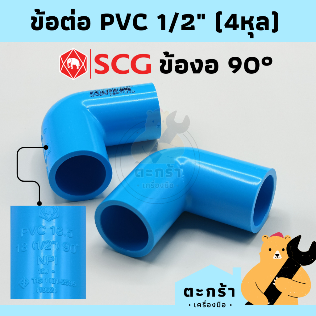 ข้อต่อ PVC พีวีซี ขนาด 1/2 นิ้ว (4 หุน) ตราช้าง SCG : ต่อตรง, ข้องอ 90 องศา, สามทาง, กิ๊ปก้ามปู