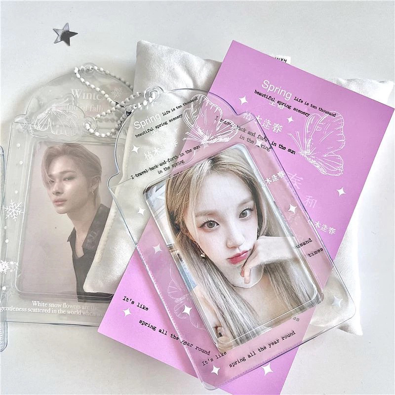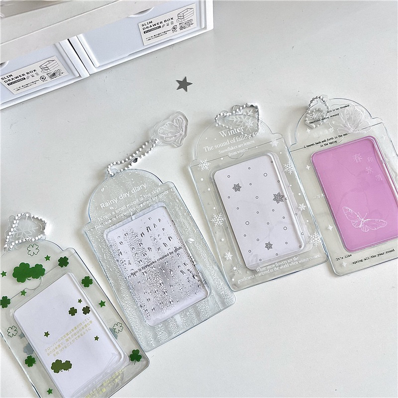 พร้อมส่งจากไทย🇹🇭 เฟรมการ์ดใส PVC ลายใบโคลเวอร์ ฝน เกล็ดหิมะ ผีเสื้อ