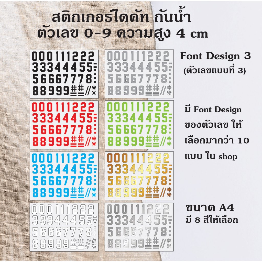 สติกเกอร์ ไดคัท PVC กันน้้ำ ตัวเลข 1-9 พร้อมเครื่องหมาย ติดกระจก ติดรถยนต์ บอร์ด ป้าย แบบ 3 ขนาดสูง 4 cm. ST-003-3-4cm