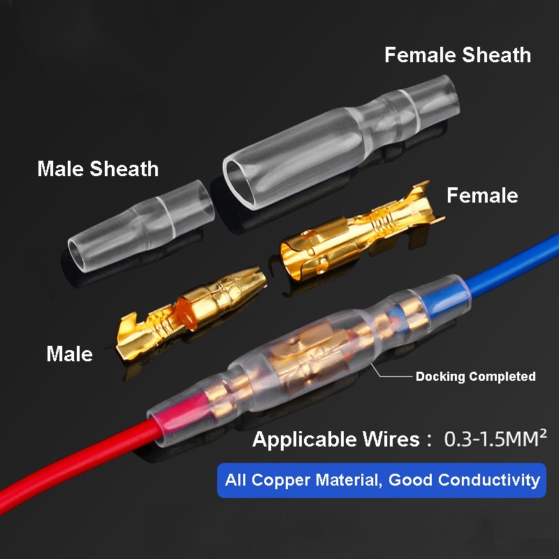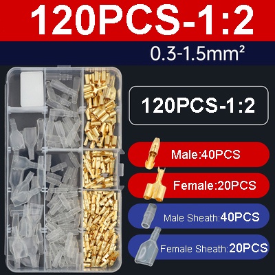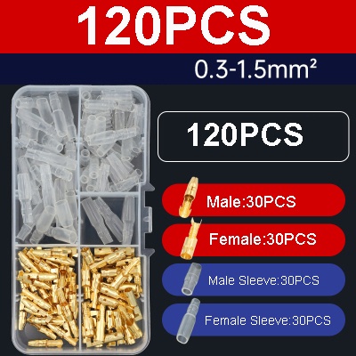 ขั้วต่อเชื่อมสายไฟ ทองเหลือง ตัวผู้ ตัวเมีย 3.5 มม. พร้อมฝาครอบขั้วต่อสายไฟรถยนต์ 120 ชิ้น ต่อชุด