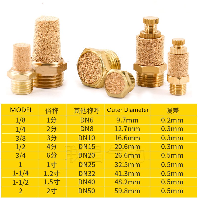 1/8 1/4 3/8 1/2 M5 ตัวเก็บเสียง ลดเสียง ทองเหลือง Brass Silencer (BESL/BSL/BSLM)