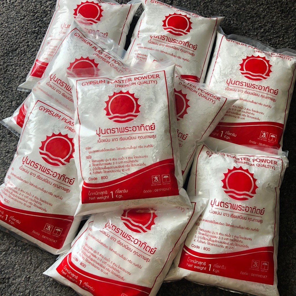 ปูนปลาสเตอร์ ปูนยิปซั่ม เกรดพรีเมี่ยม สูตรแดง ใช้สำหรับงานขึ้นรูป งานปั้น เนื้อละเอียด ขาวสะอาด โรงงานทำเอง ถุงละ 1 KG
