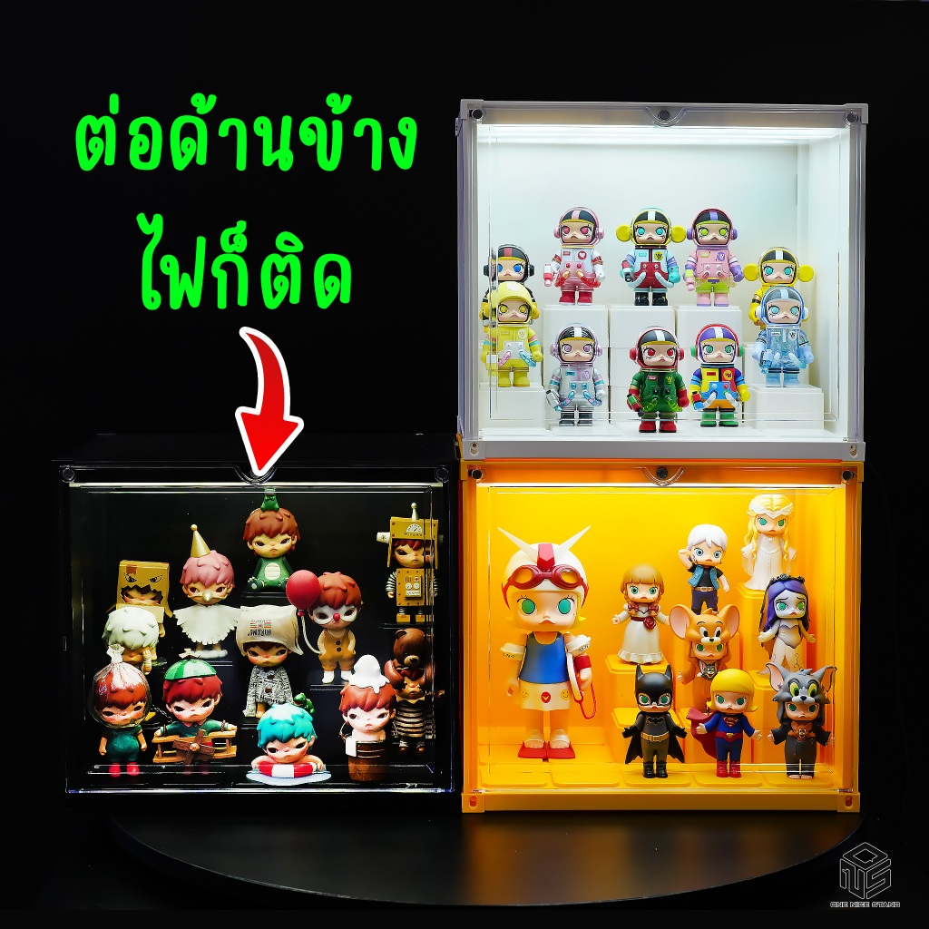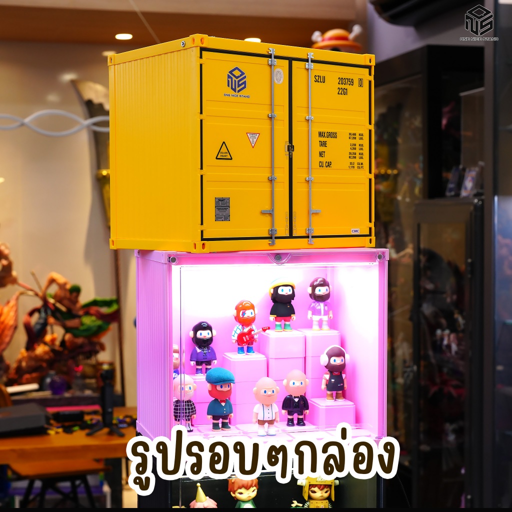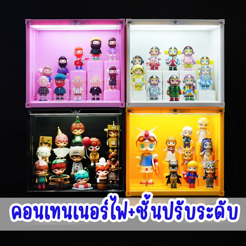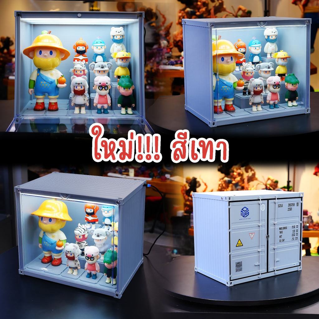 คอนเทนเนอร์มีไฟ แบบเหลี่ยม แถมชั้นปรับระดับ ไฟต่อกันได้ แถมadapter ใส่โมเดล ฟิกเกอร์ WCF arttoy