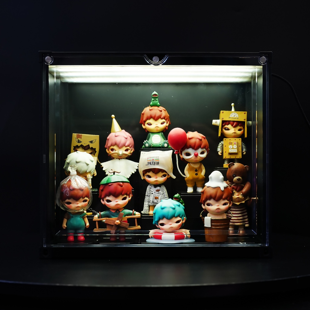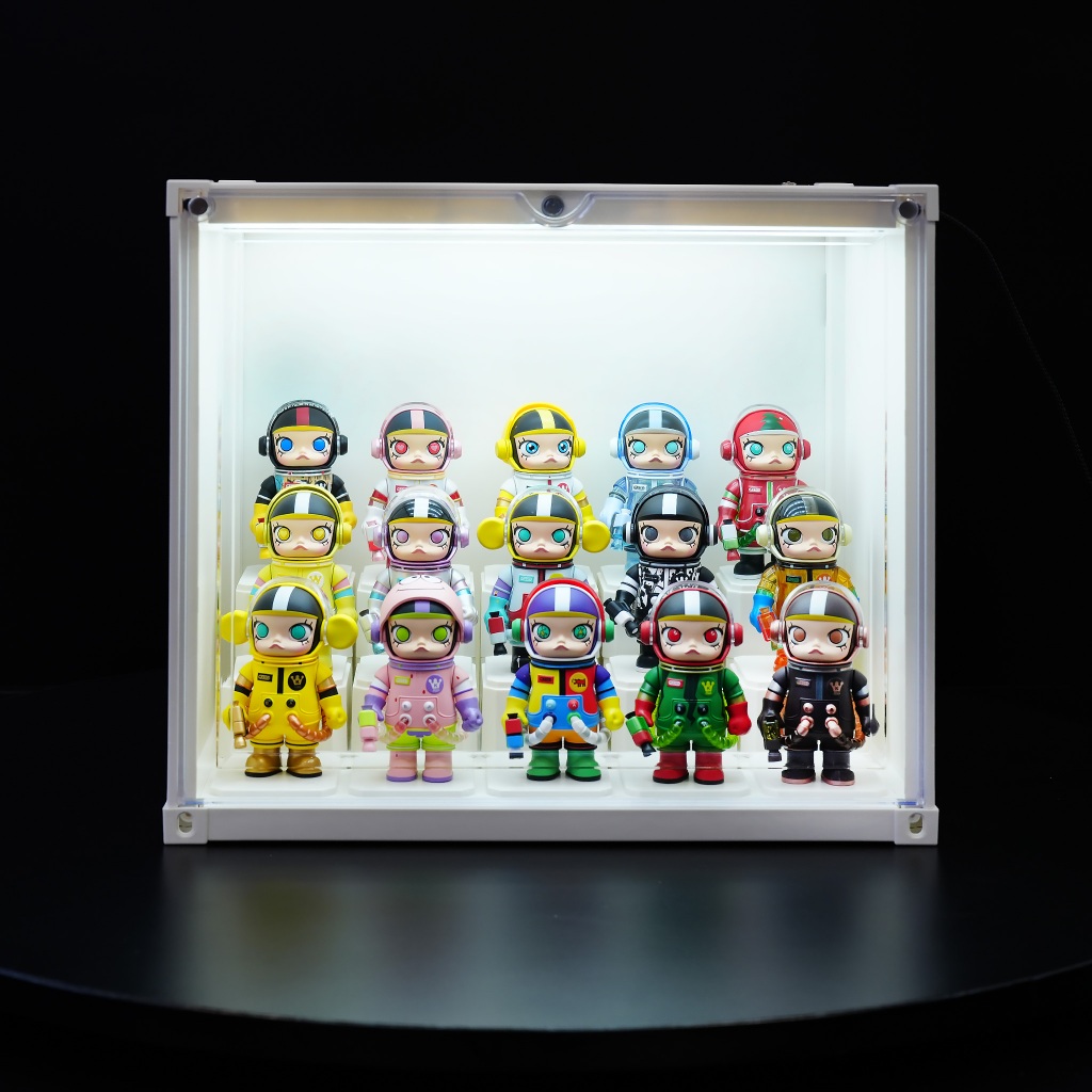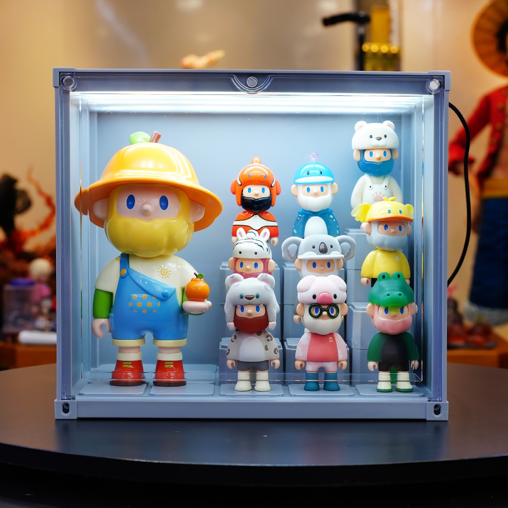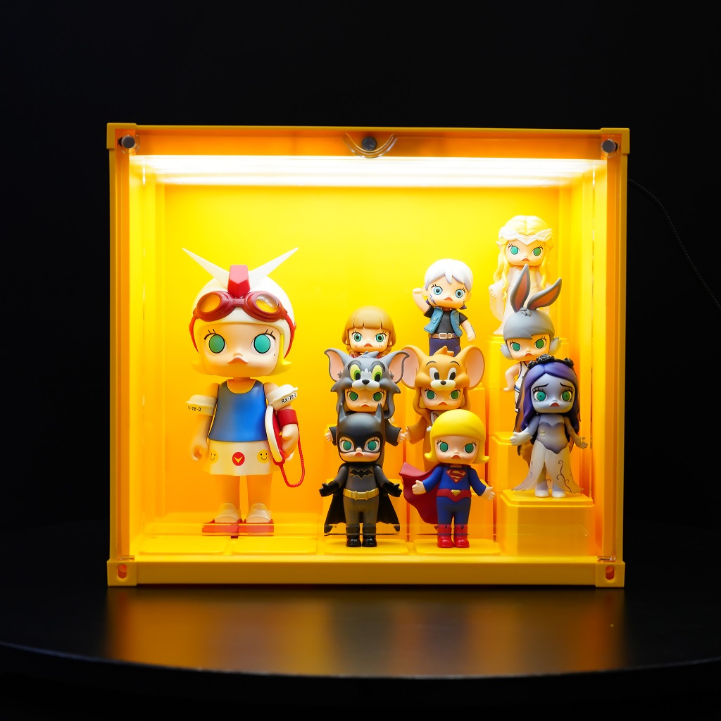 คอนเทนเนอร์มีไฟ แบบเหลี่ยม แถมชั้นปรับระดับ ไฟต่อกันได้ แถมadapter ใส่โมเดล ฟิกเกอร์ WCF arttoy