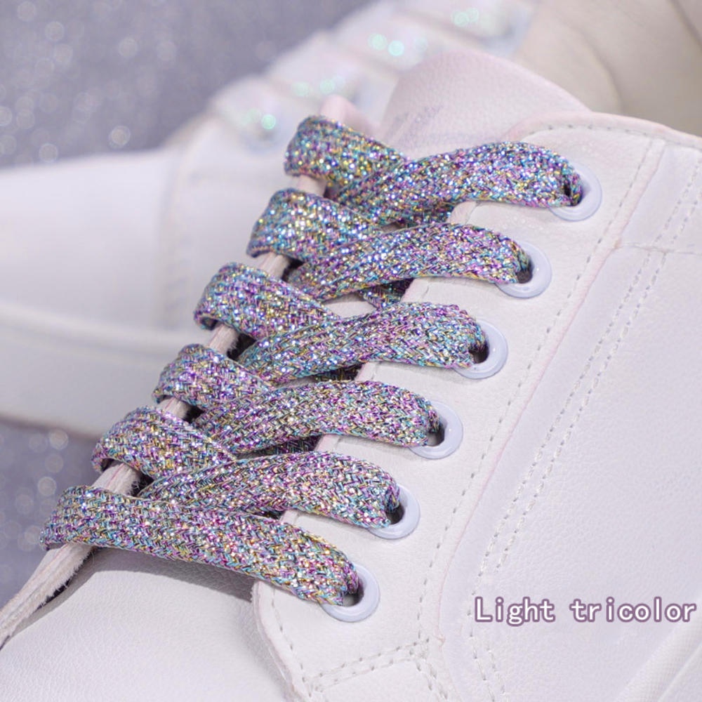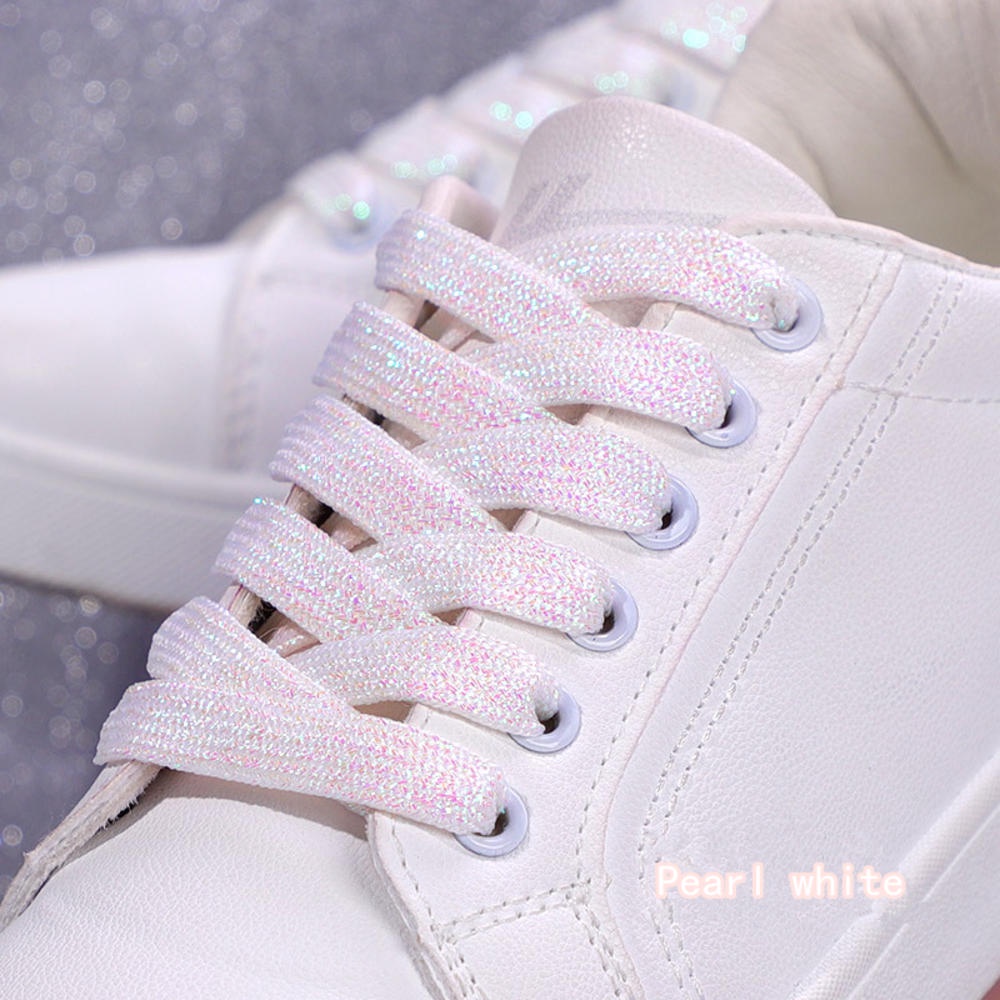 เชือกผูกรองเท้า กว้าง 1 ซม. ประดับกลิตเตอร์ หลากสี สําหรับรองเท้าผ้าใบ วิ่ง เล่นกีฬา 1 คู่