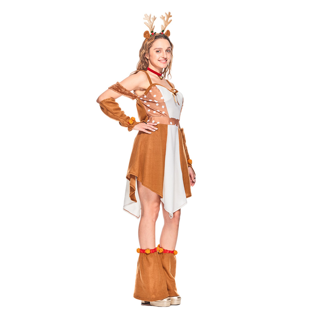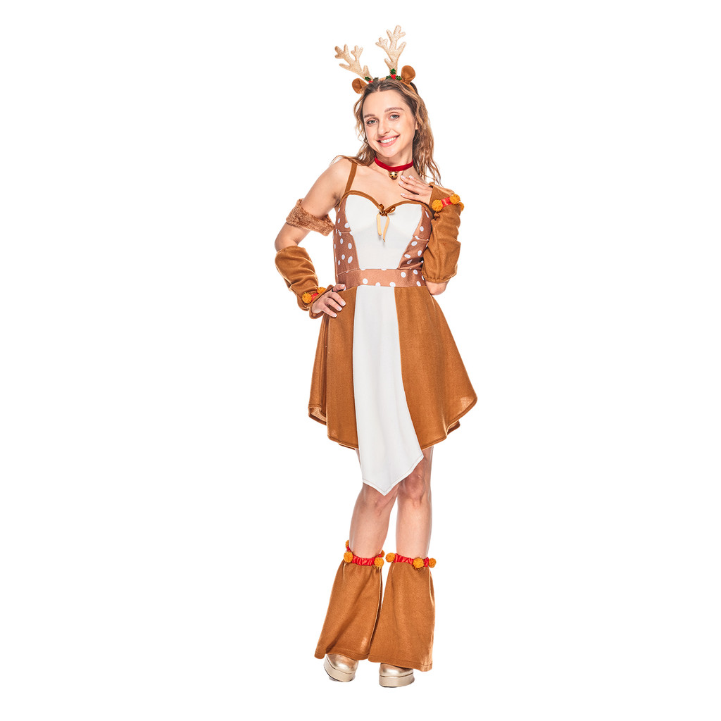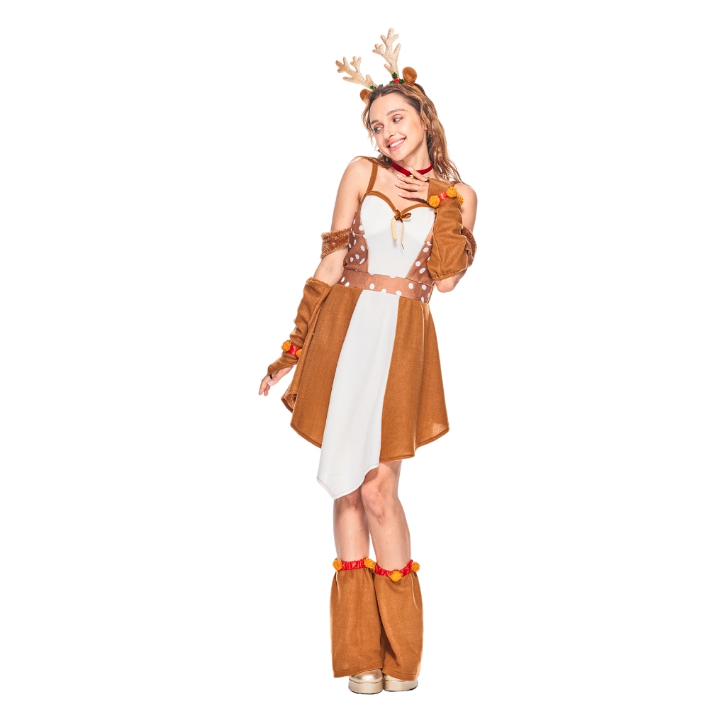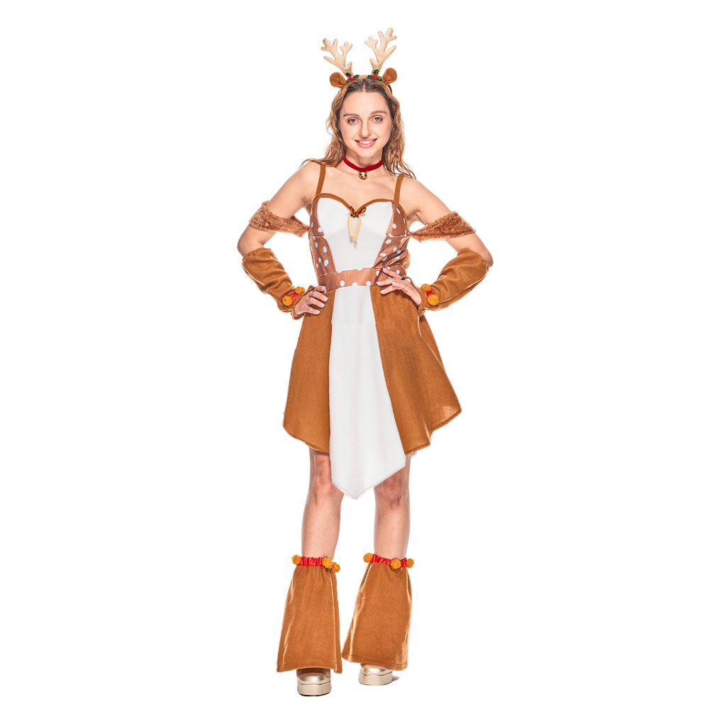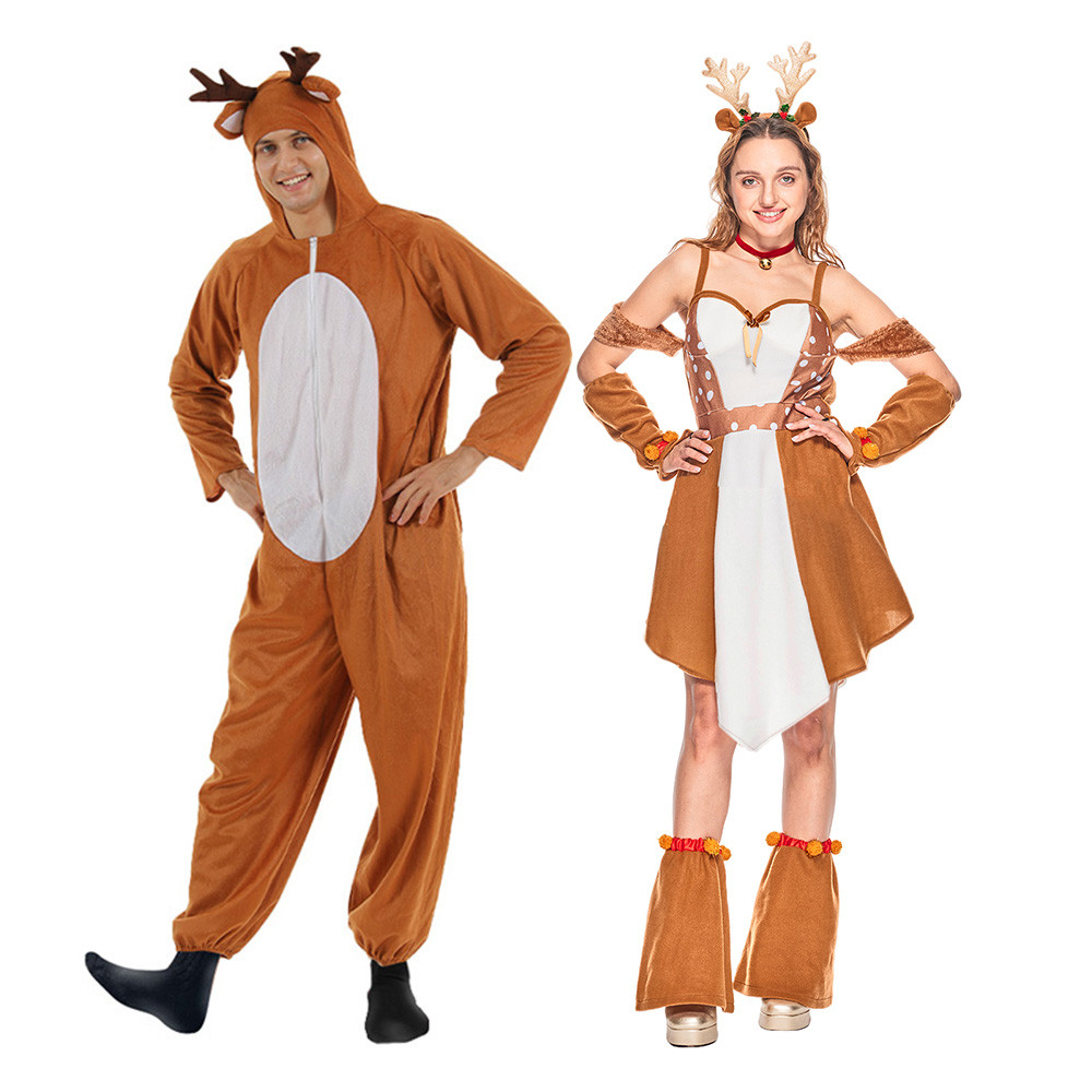 ❤พร้อมส่ง❤ชุดกวางคริสต์มาสน่ารักสำหรับผู้หญิง ผู้ใหญ่คู่คริสต์มาสกวางเรนเดียร์มาสคอตเครื่องแต่งกาย ครอบครัวคริสมาสต์ Elk คอสเพ ลย์ชุด สัตว์ฮาโลวีน Onesie ปาร์ตี้แต่งตัวเกม