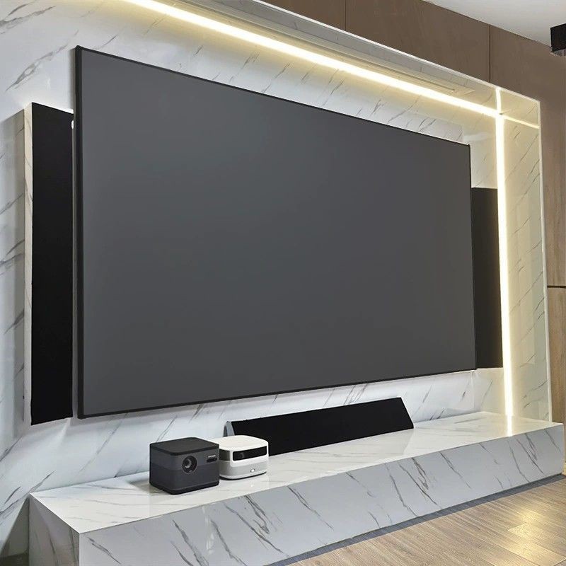 จอโปรเจคเตอร์กรอบใหม่ป้องกันแสงแดด ขนาด 100 นิ้ว ระยะฉายกลางยาว HD ขอบแคบ ป้องกันแสง จอกรอบบ้าน