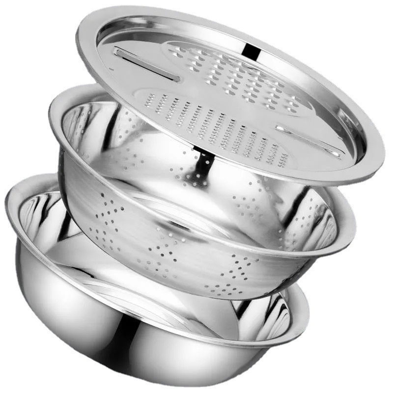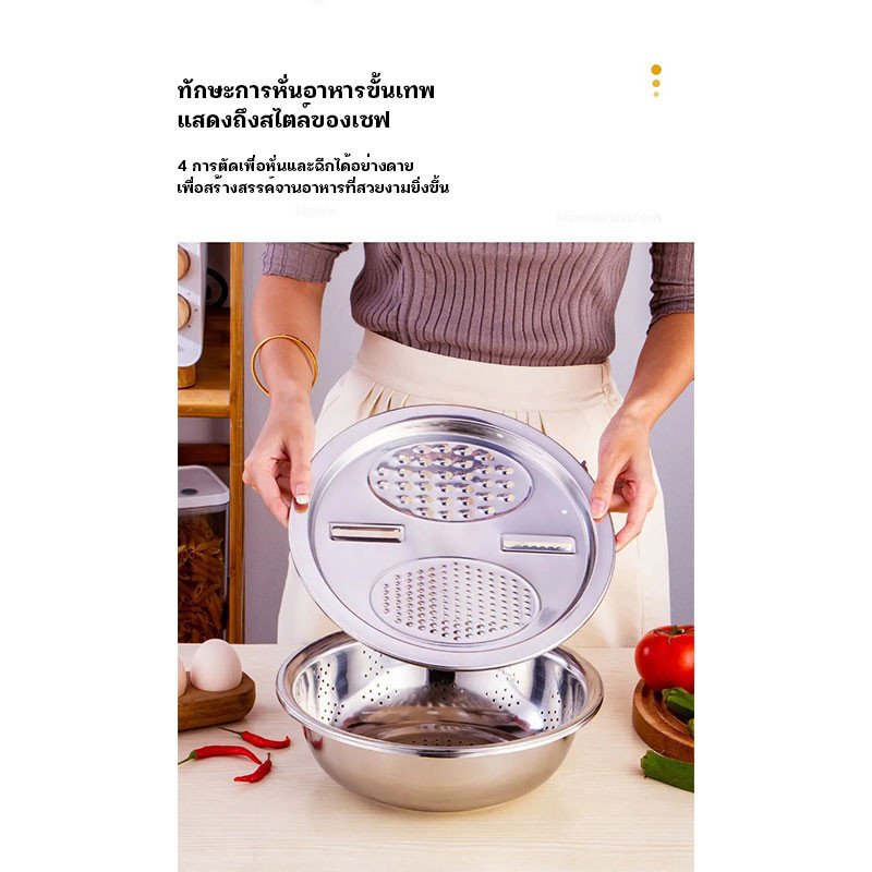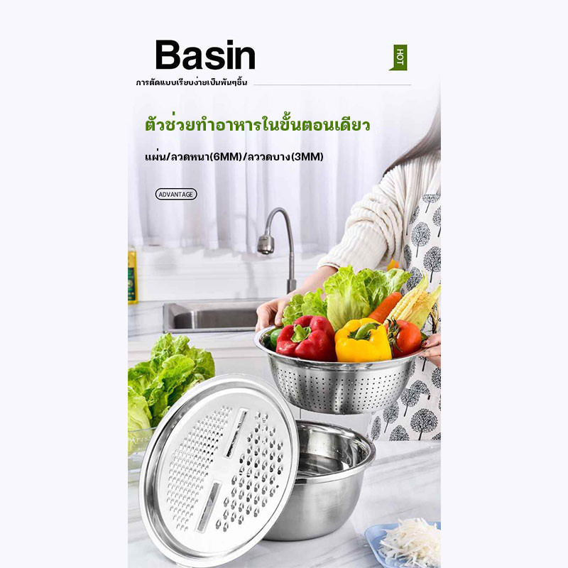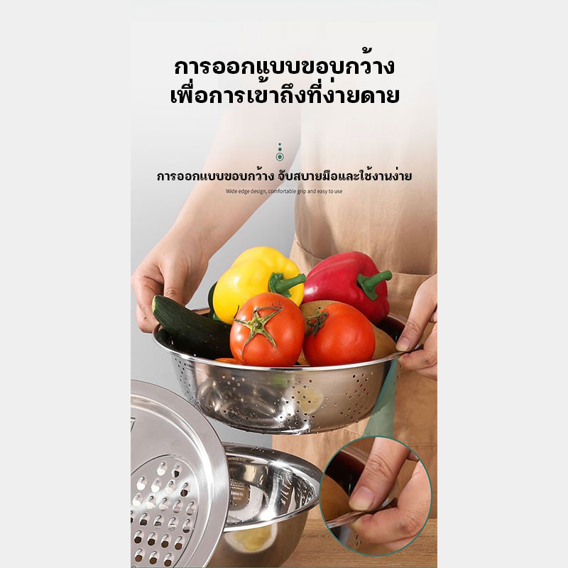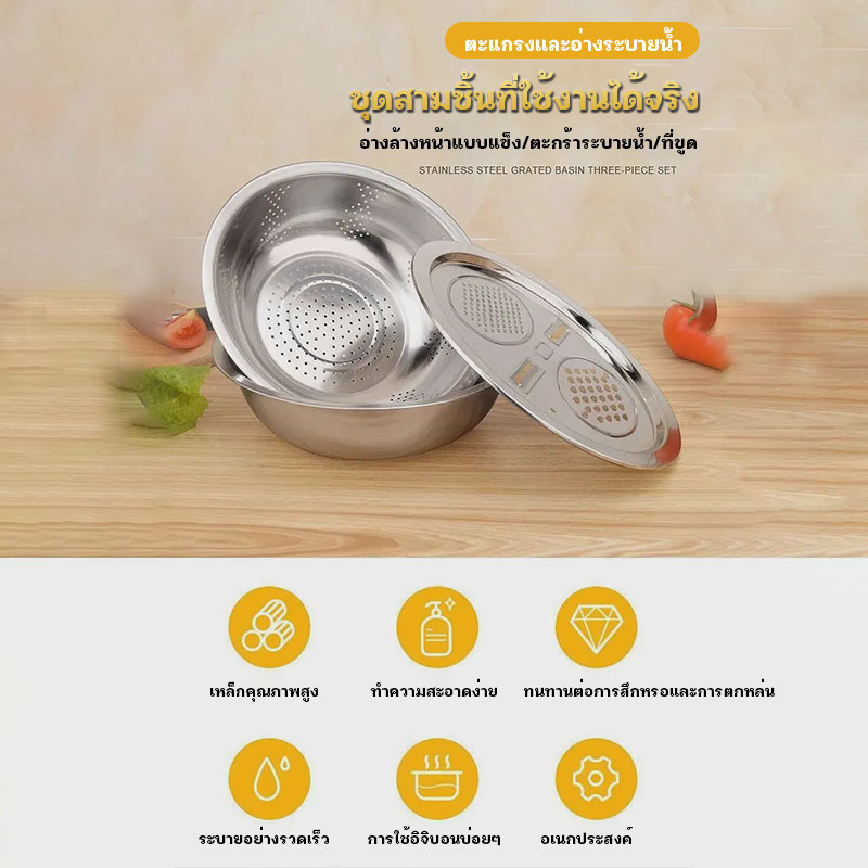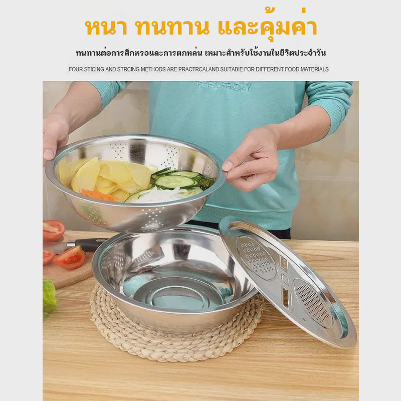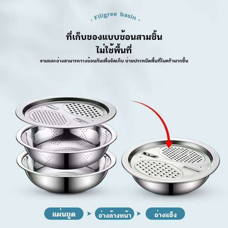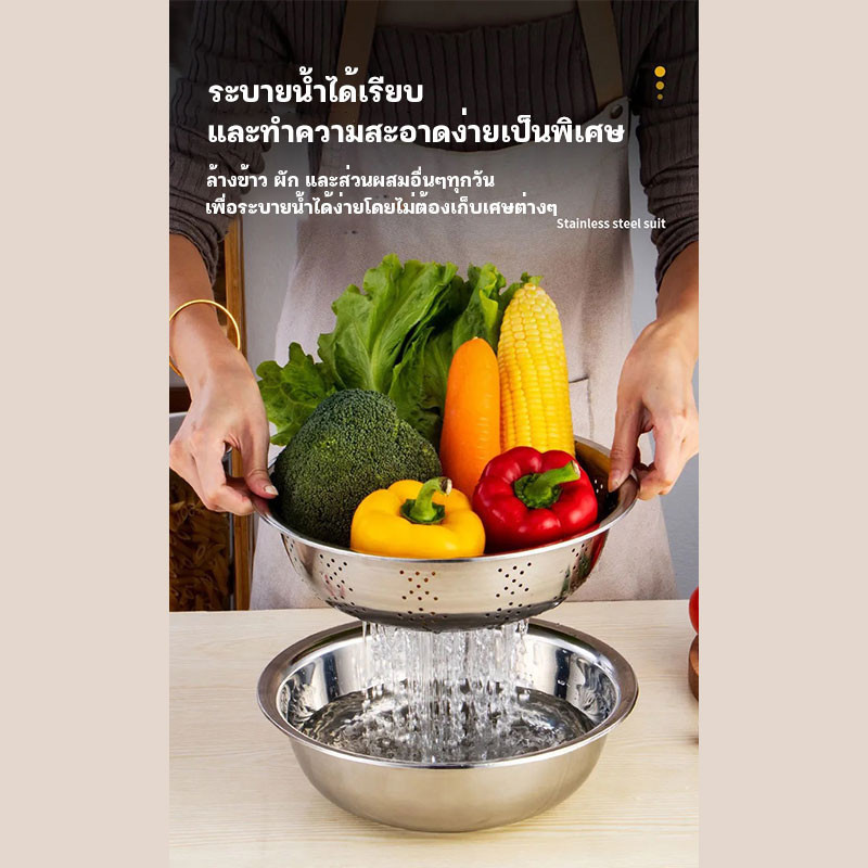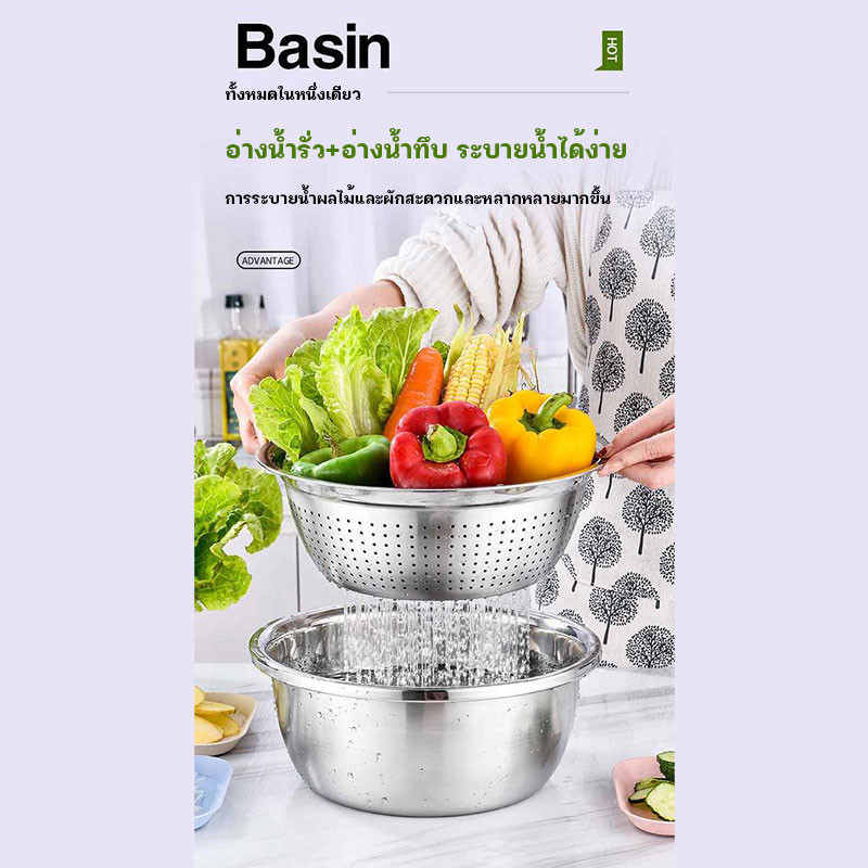 กะละมัง 3in1กะละมังสแตนเลสมีรู ไม่ขึ้นสนิม ใช้ดี ช่วยให้ผัก ผลไม้ เสด็จน้ำ มีให้เลือก