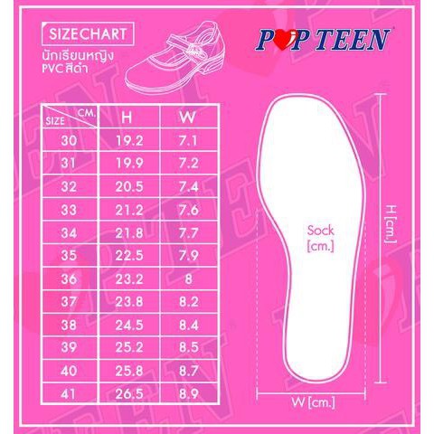รองเท้านักเรียนหญิง หนังดำ POPTEEN รหัส PT99 ปี 2024 รหัส POP88 ปี 2026