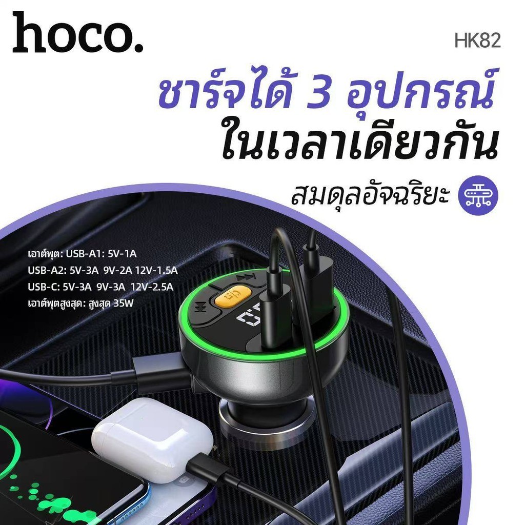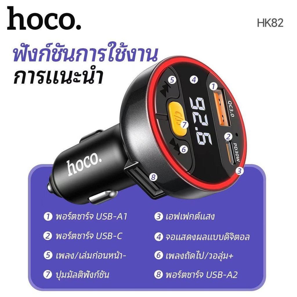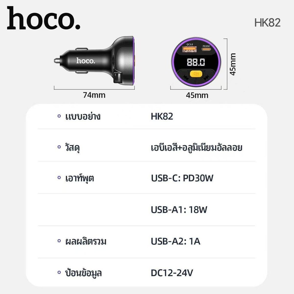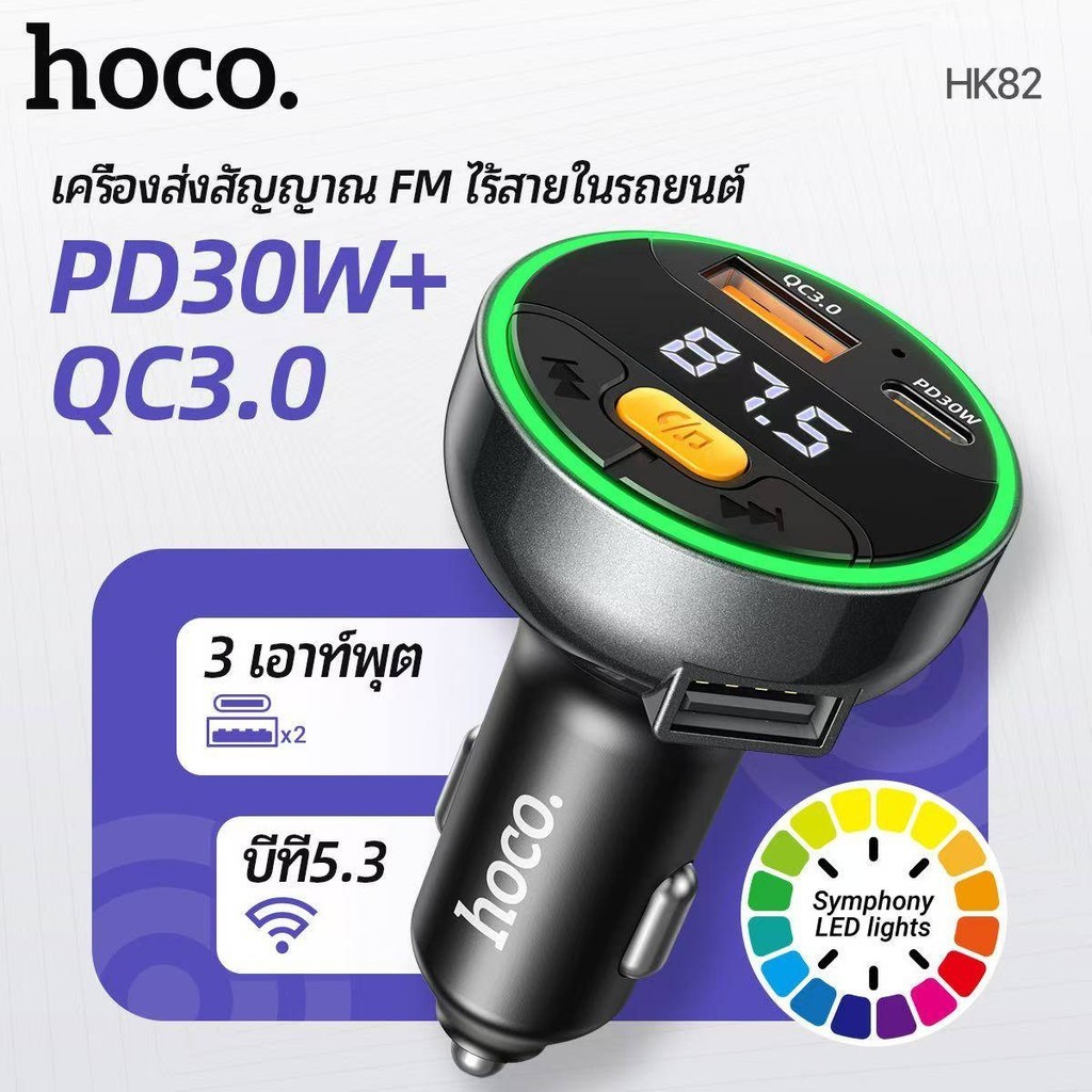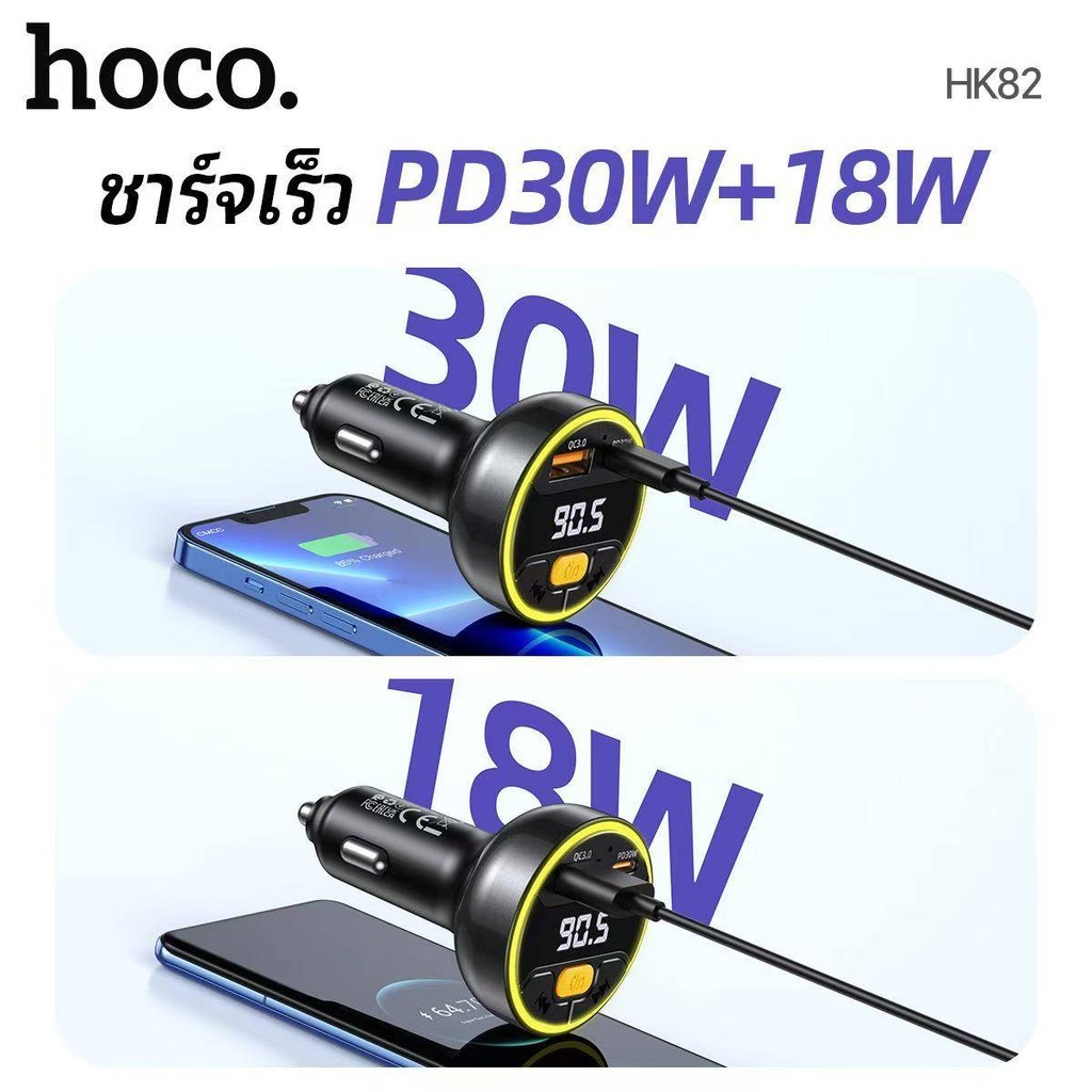 [VID] HOCO HK82 ที่ชาร์จในรถ + บลูทูธรถยนต์ รองรับ PD 30W + QC 3.0 ไมโครโฟนในตัว BT FM Transmitter hc7