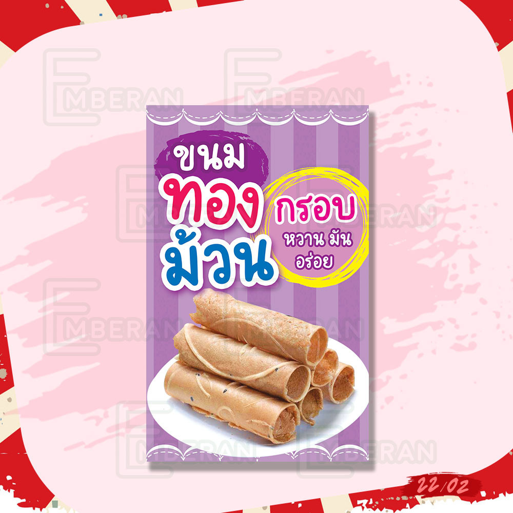 ป้ายไวนิล “ขนมทองม้วน กรอบ หวาน มัน” แนวตั้ง แบบสำเร็จ ลดเวลาในการออกแบบ