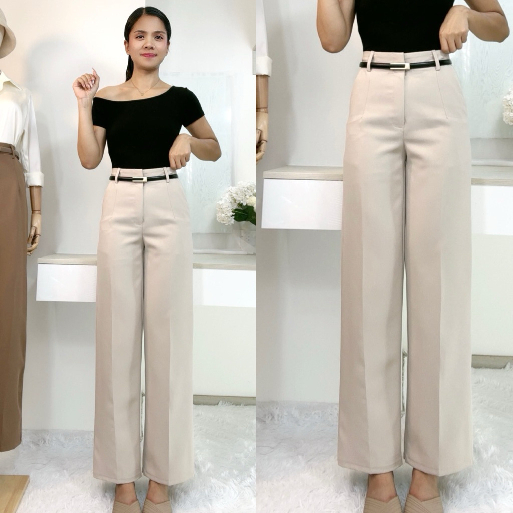 กางเกงทำงานทรงขากระบอกกลาง มีหูใส่เข็มขัด ตะขอหน้า เอวสูง ผ้าไอด้า เกรด Premium [B9]