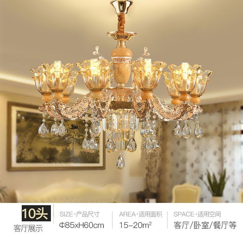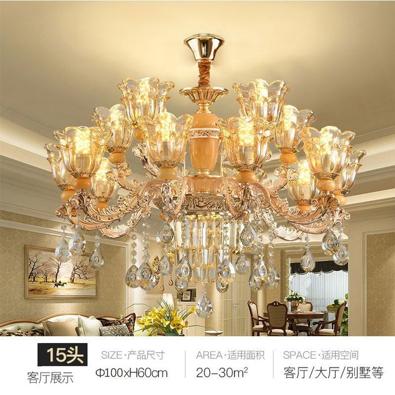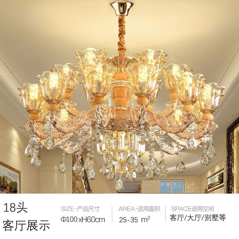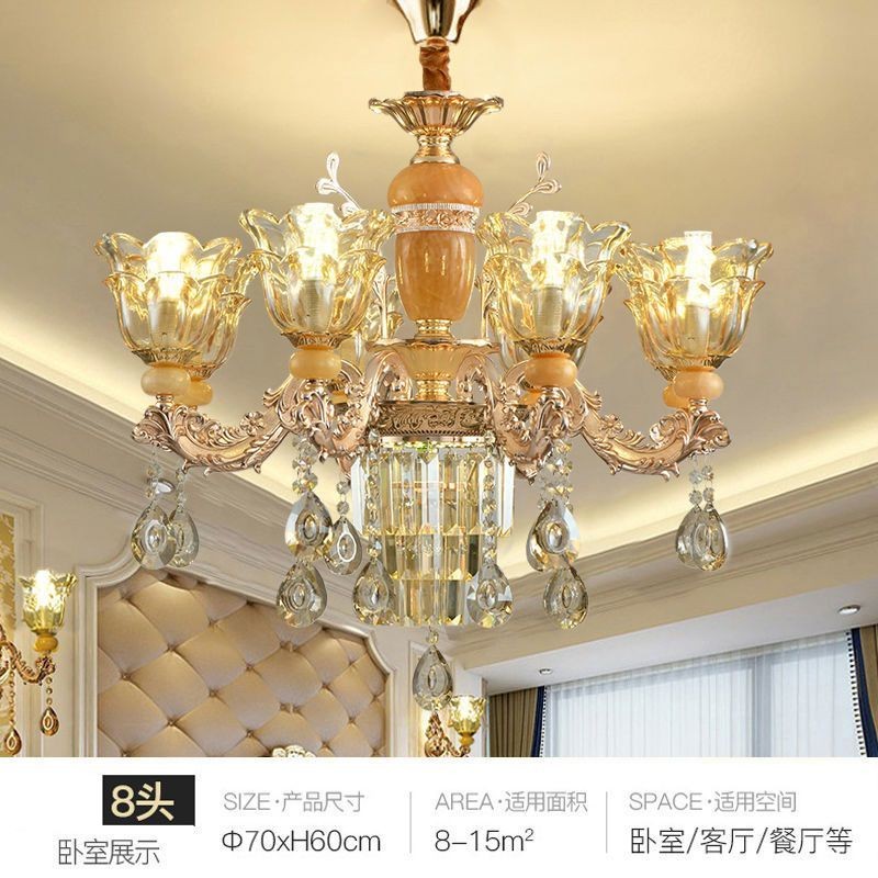 โคมระย้าคริสตัลหยกธรรมชาติสไตล์ยุโรปหรูหราระดับไฮเอนด์ห้องนั่งเล่นห้องรับประทานอาหารห้องนอนหรูหราเบาๆแพ็คเกจโคมไฟห้องโถง