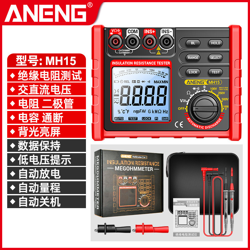เครื่องทดสอบความต้านทานฉนวนดิจิตอล megohmmeter 500V เครื่องตรวจจับอัจฉริยะ1000V เครื่องวัดไฟฟ้าและอิเล็กทรอนิกส์แรงดันสู