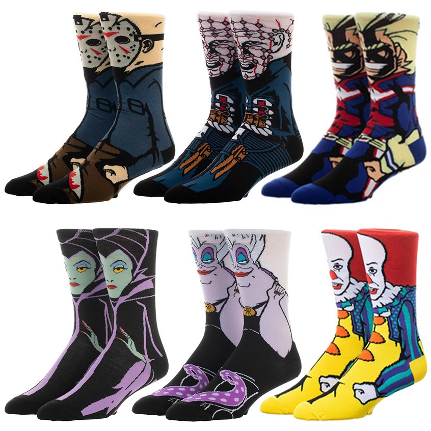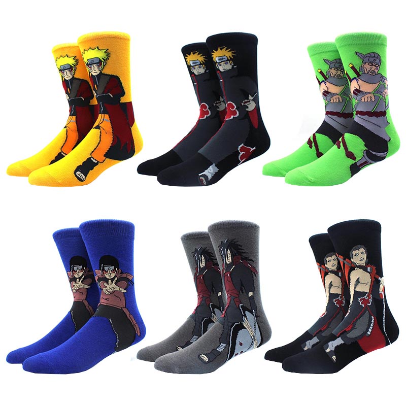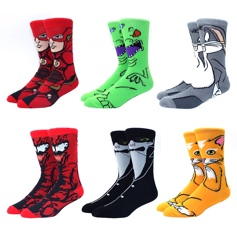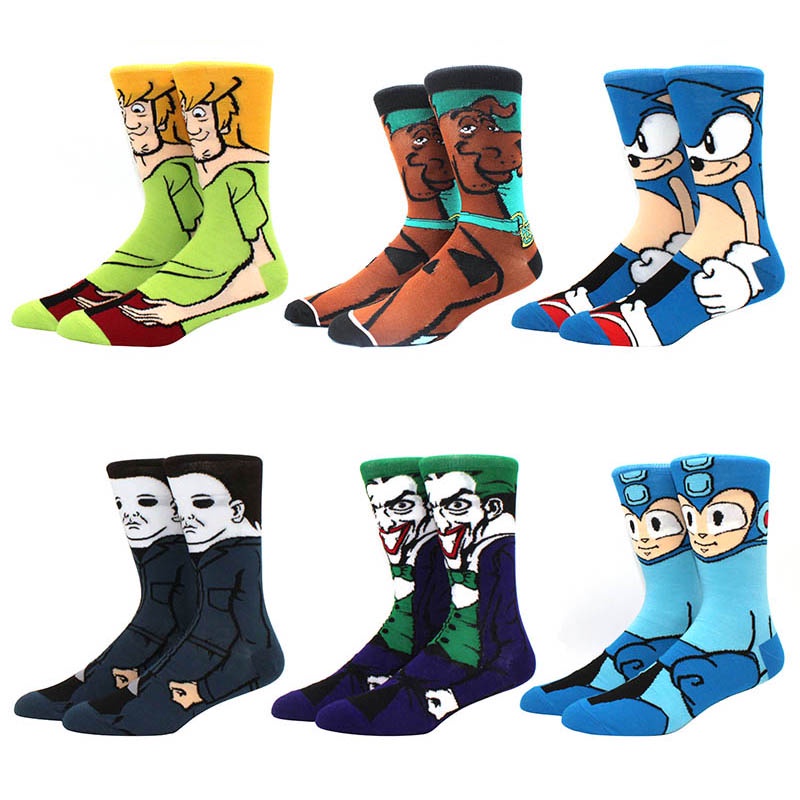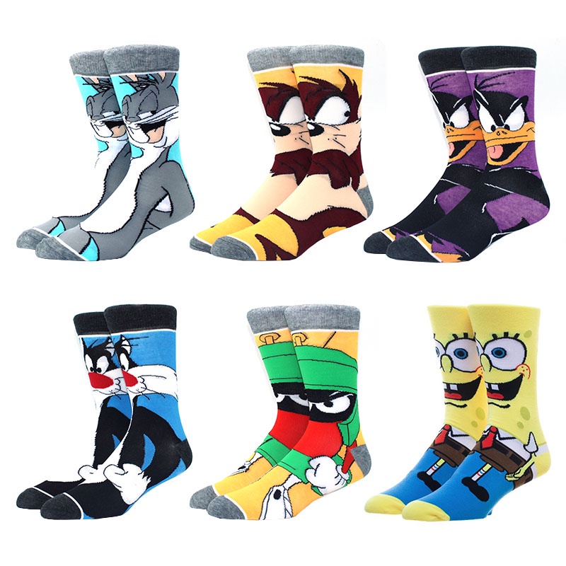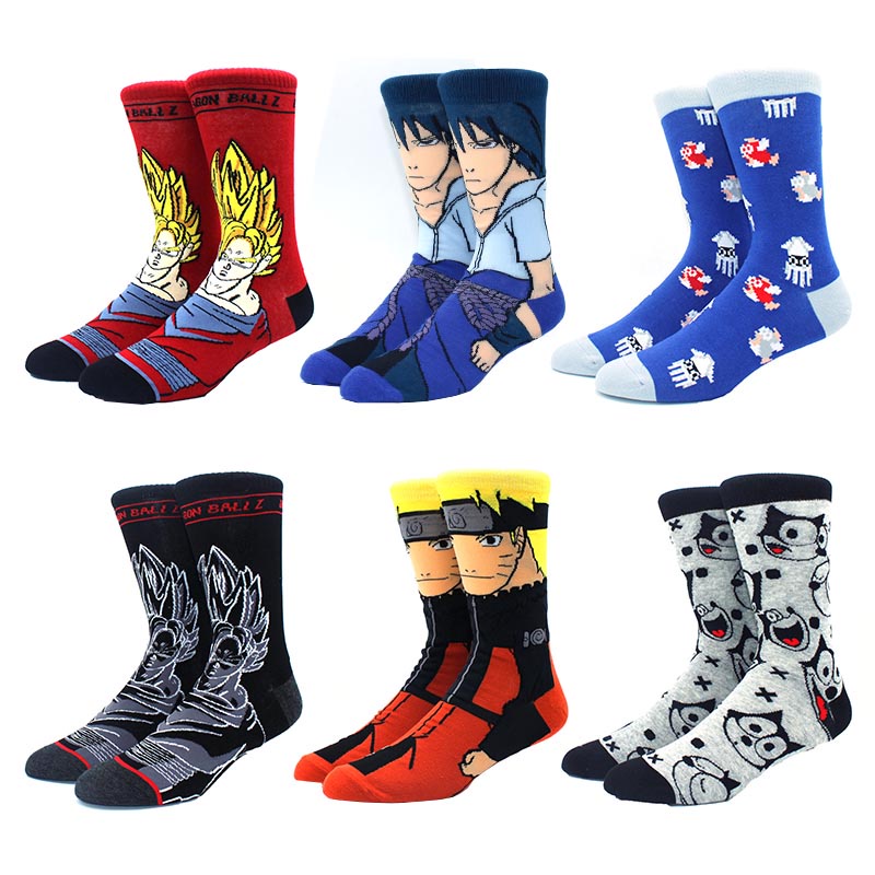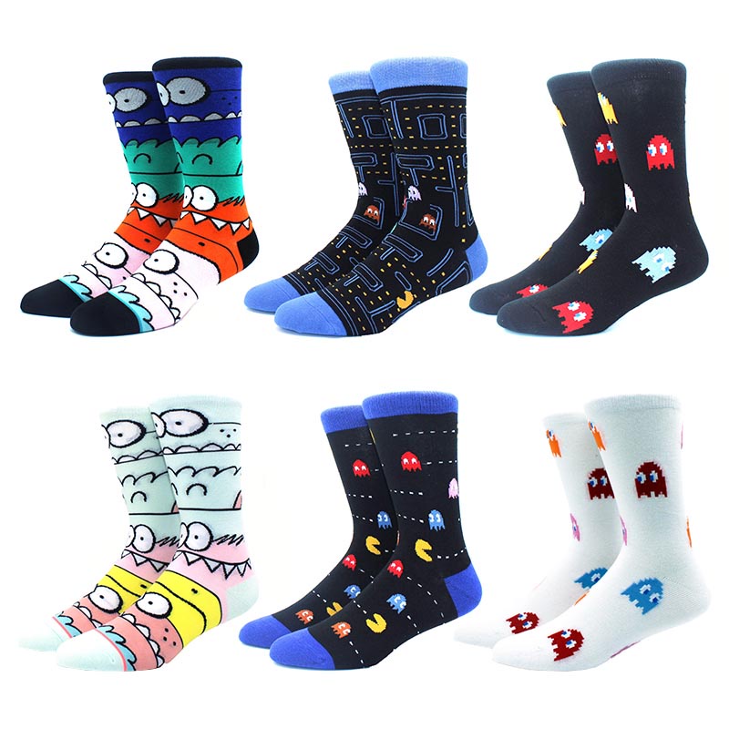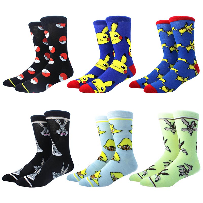 ถุงเท้าแฟชั่นผู้ชาย 6 คู่ การ์ตูนอะนิเมะตลก ฮิปฮอป บุคลิกภาพ ลายการ์ตูน คุณภาพสูง เทรนด์!