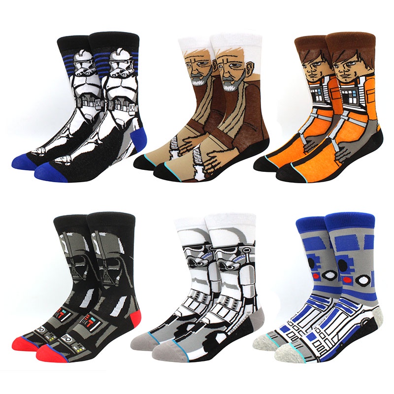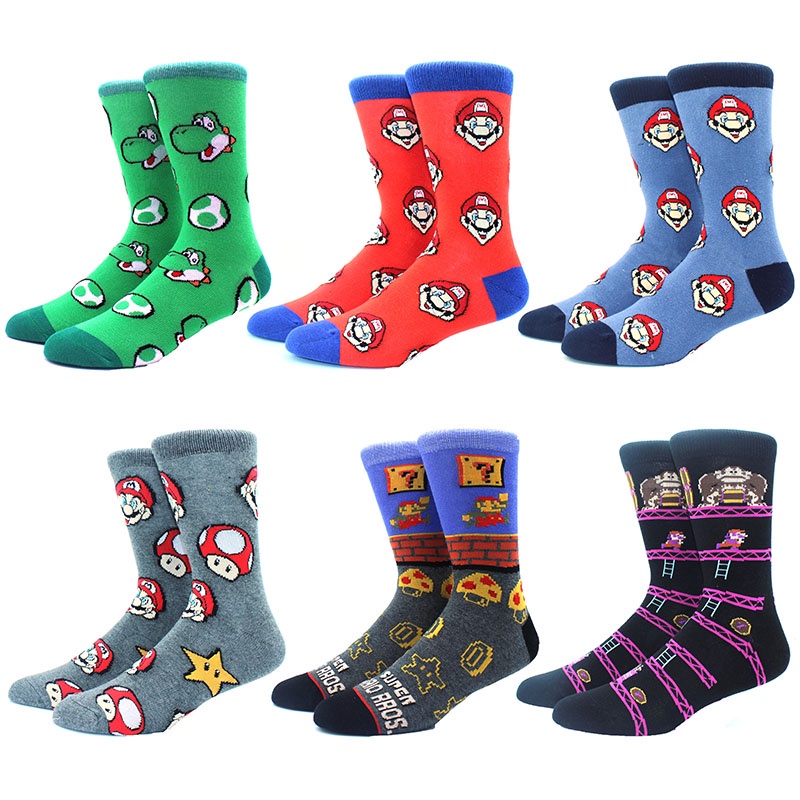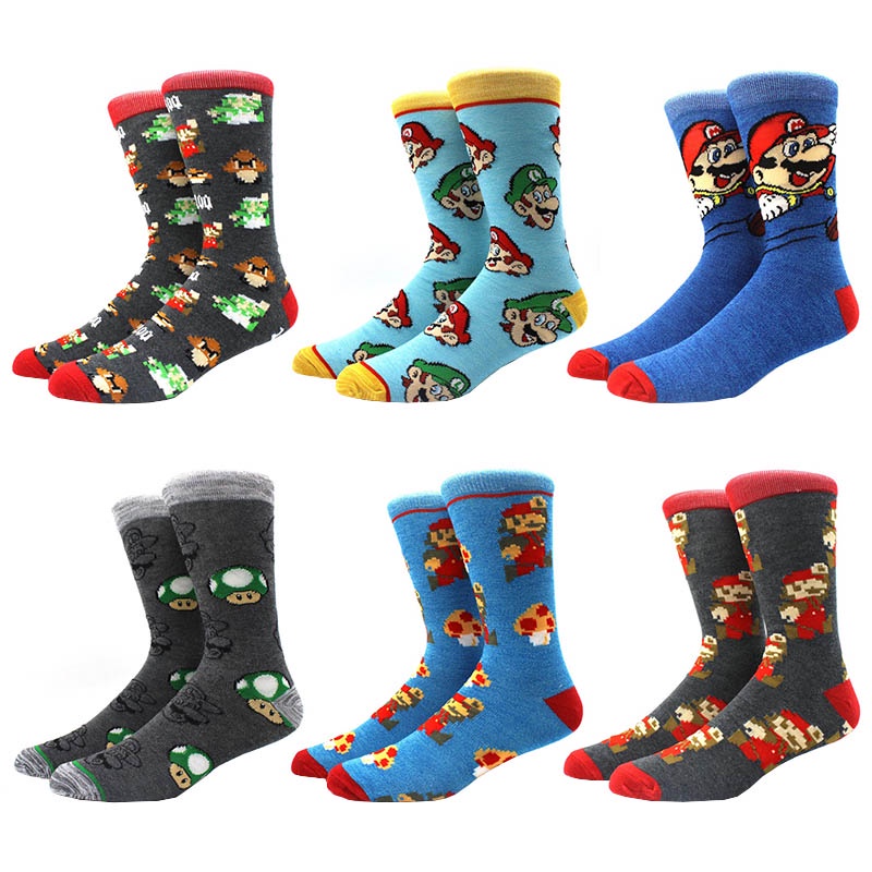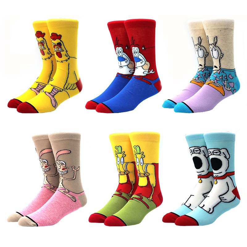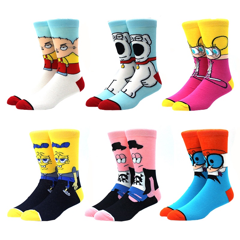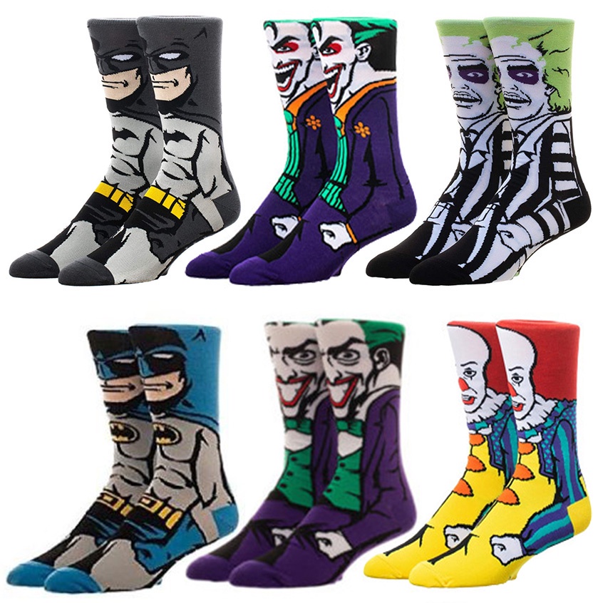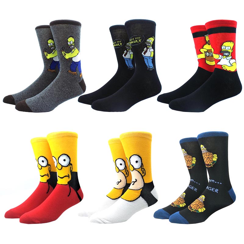 ถุงเท้าแฟชั่นผู้ชาย 6 คู่ การ์ตูนอะนิเมะตลก ฮิปฮอป บุคลิกภาพ ลายการ์ตูน คุณภาพสูง เทรนด์!