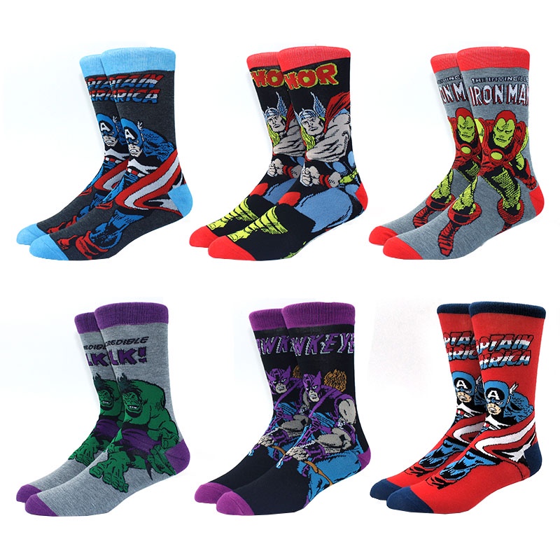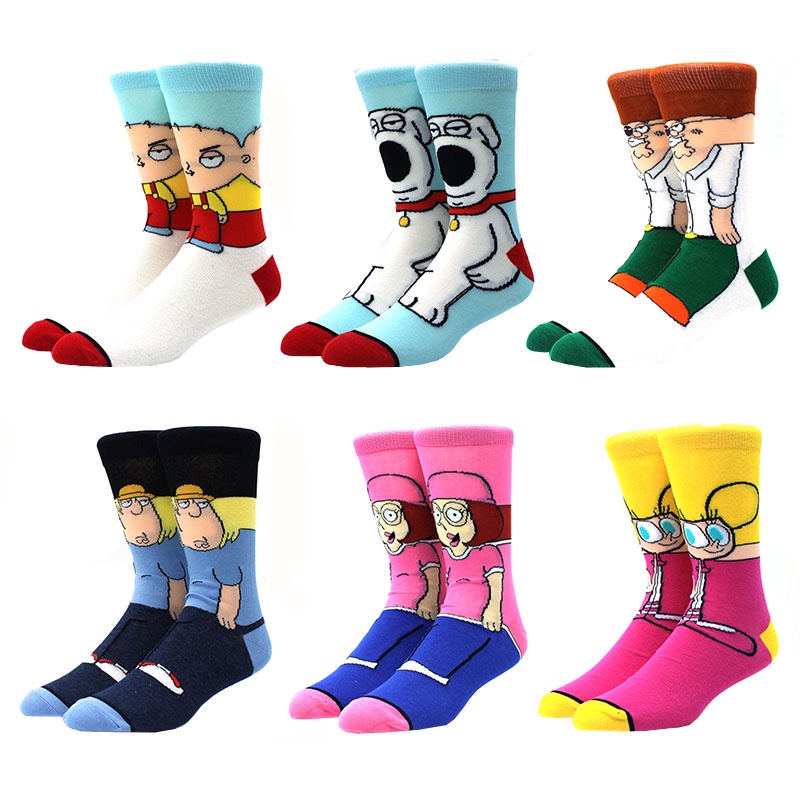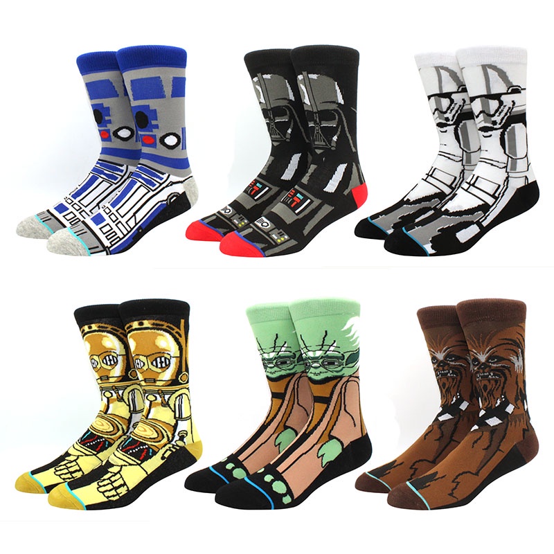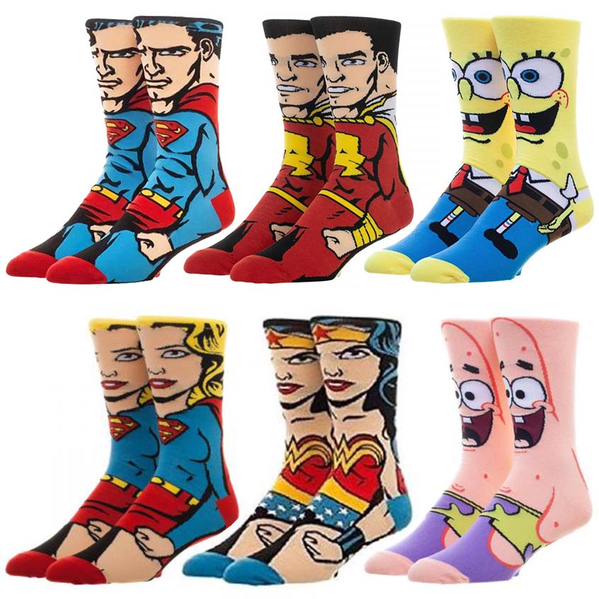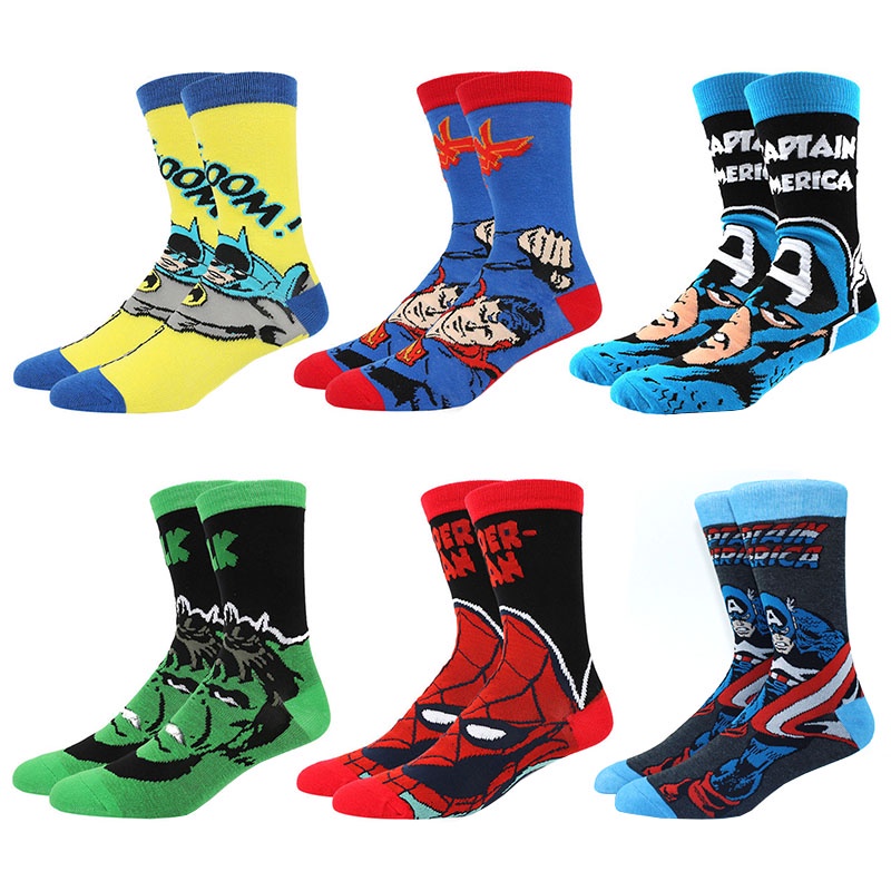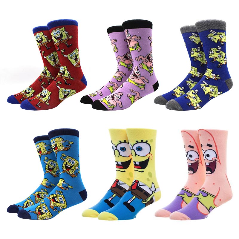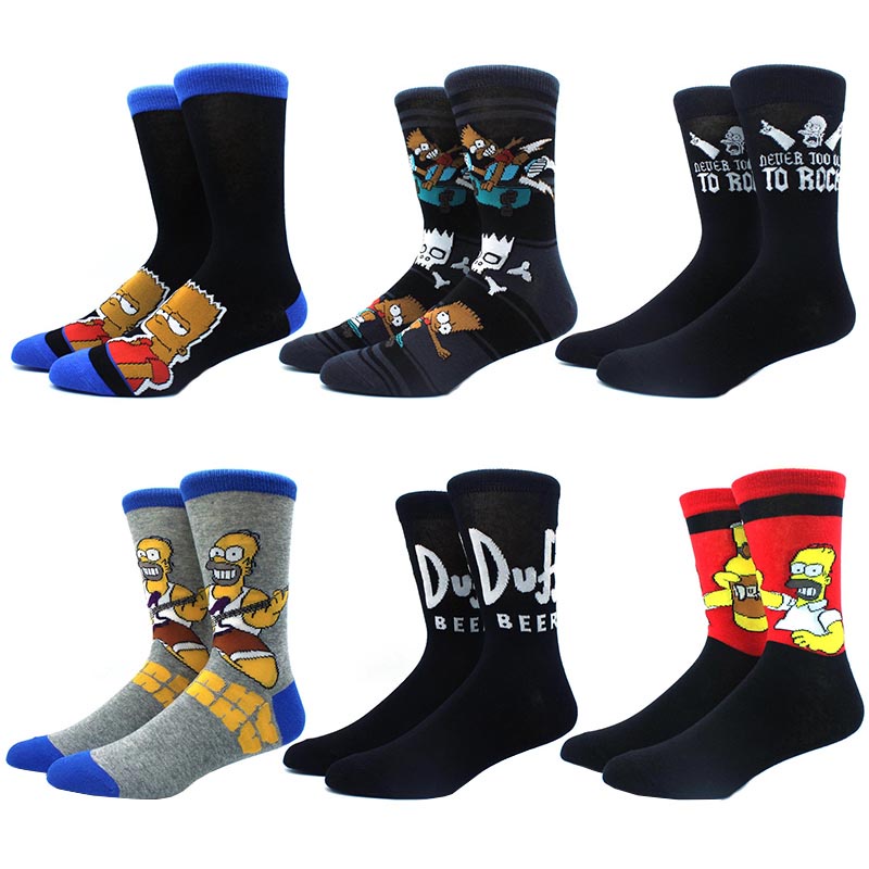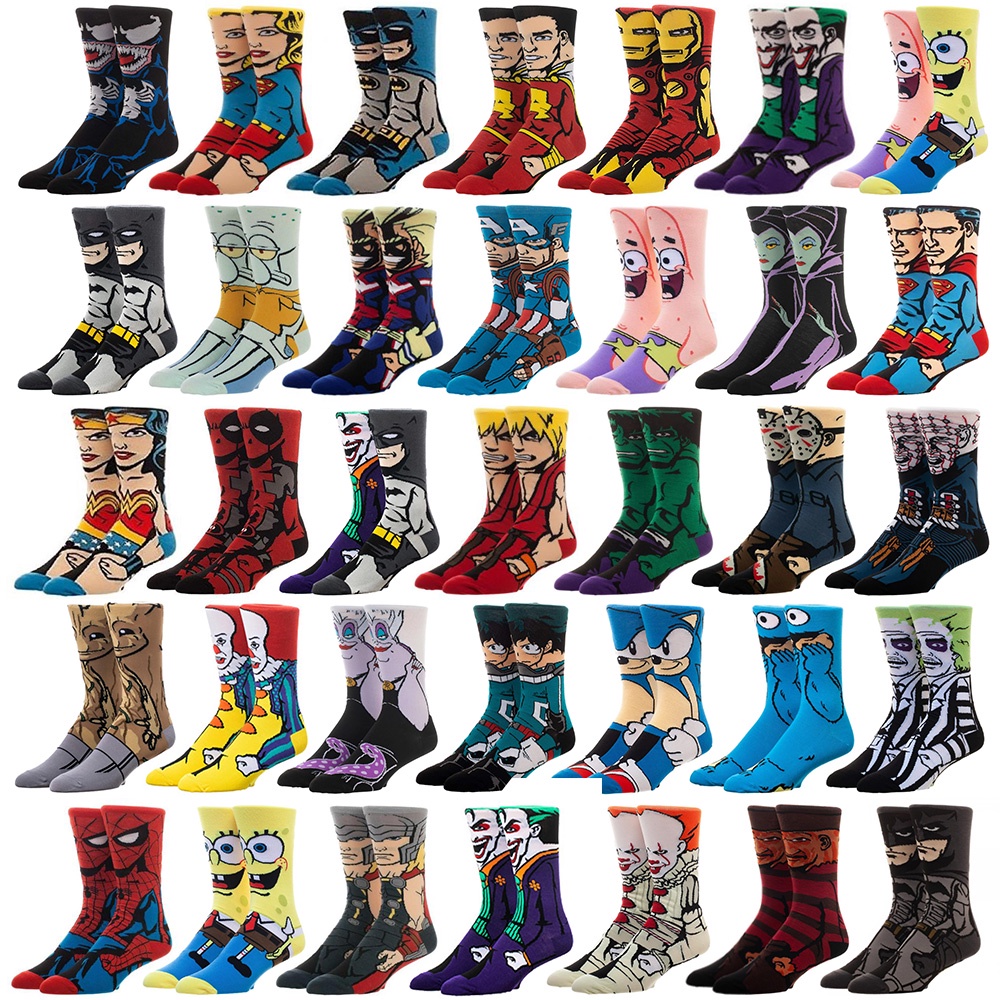 ถุงเท้าแฟชั่นผู้ชาย 6 คู่ การ์ตูนอะนิเมะตลก ฮิปฮอป บุคลิกภาพ ลายการ์ตูน คุณภาพสูง เทรนด์!