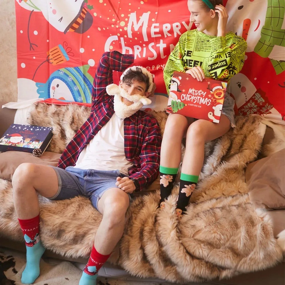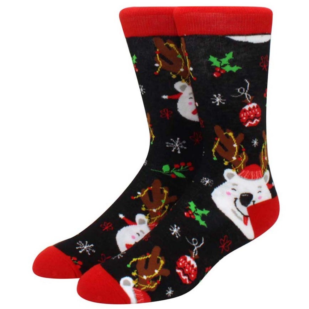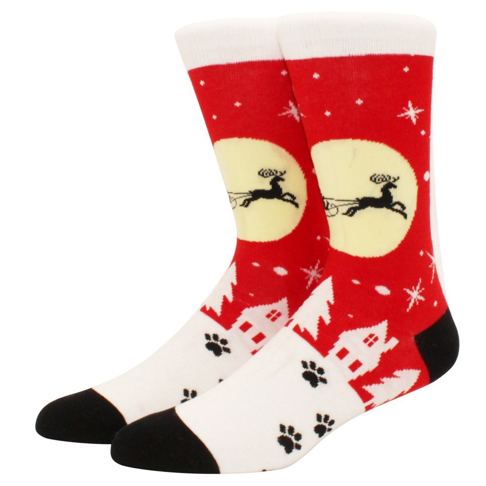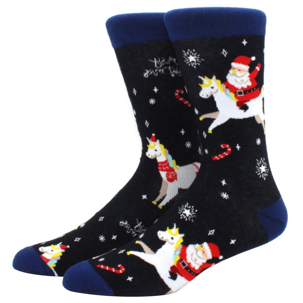1คู่การ์ตูนซานตาคลอสถุงเท้าผู้ชายสบายฮาราจูกุอินเทรนด์สัตว์ถุงเท้าระบายอากาศดาวของขวัญคริสต์มาส