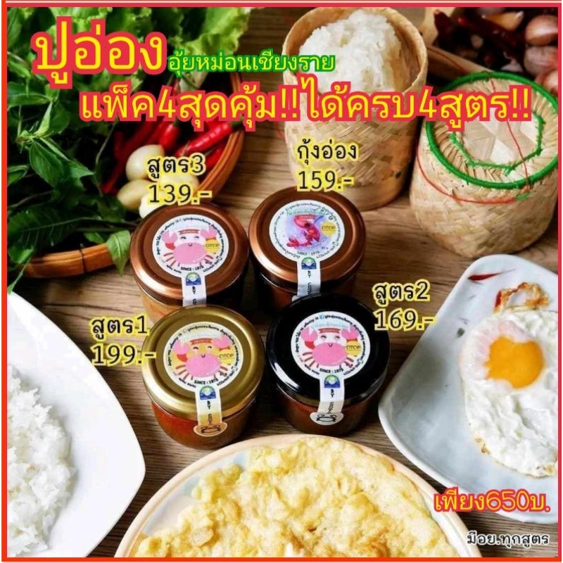 ปูอ่องอุ้ยหม่อนเชียงราย🦀 เซ็ตรับครบ4สูตร/4กระปุกสุดคุ้ม!!