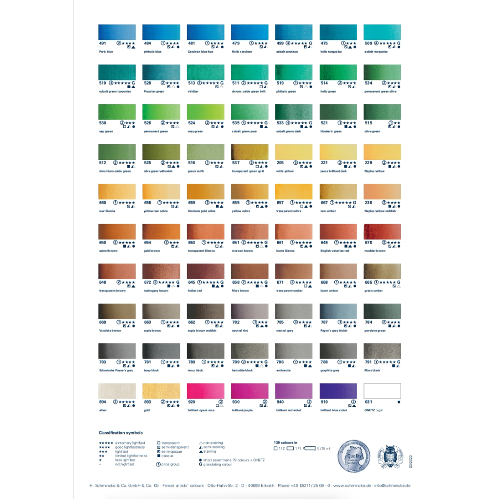 Schmincke สีน้ำเกรด Artist ขนาด 5 มล. 140 เฉดสี (S.2) (2/2 )