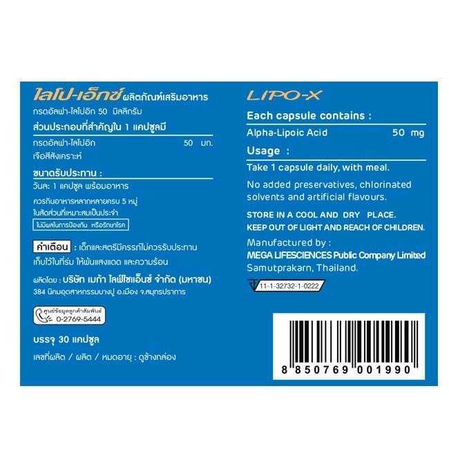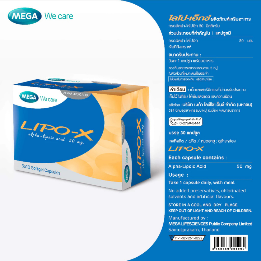 MEGA We Care Lipo-X Alpha-Lipoic Acid 50mg 30 เม็ด [1952]
