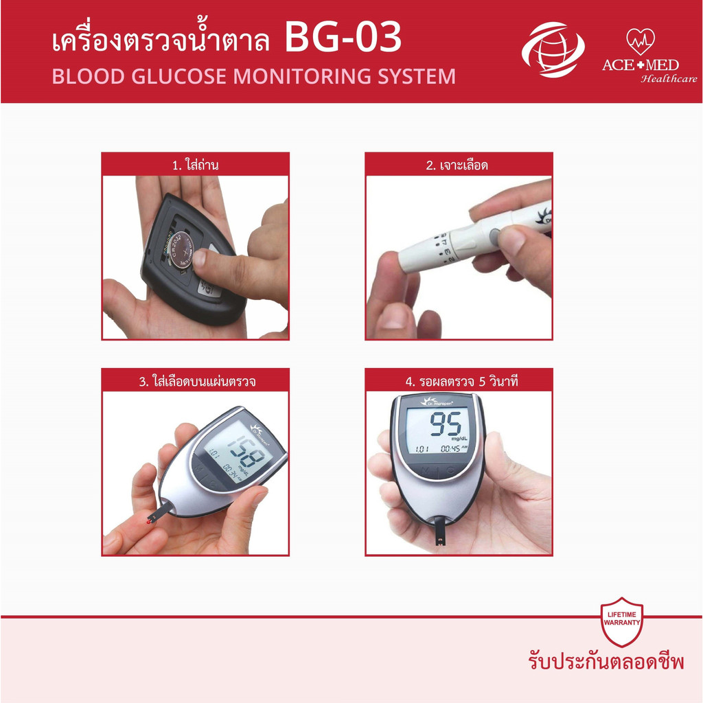 DR.MOREPEN GLUCOSE MONITOR (GLUCOONE BG-03) เครื่องวัดน้ำตาล เครื่องเจาะน้ำตาล ace+med bg03