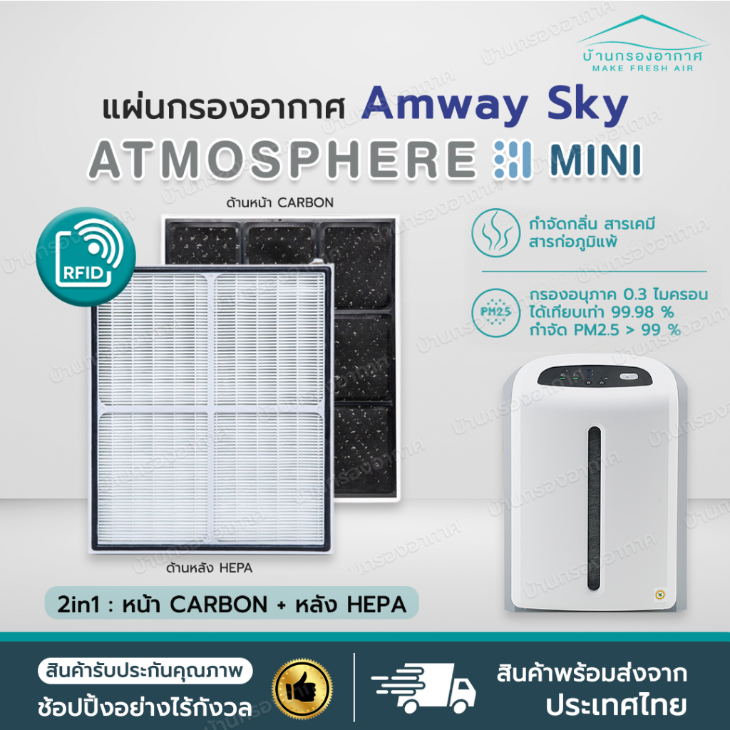 [2แผ่น] แผ่นกรองอากาศ แอมเวย์ Amway รุ่น 1,2,3 Atmosphere SKY แอทโมสเฟียสกาย ชุด Hepa + Carbon Amway Sky Atmosphere Mini