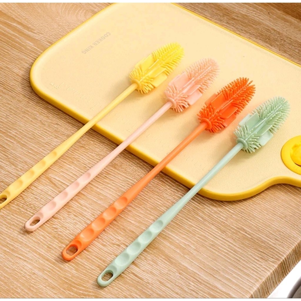แปรงล้างถ้วย แปรงล้างขวด ซิลิโคน 5 สี สวย น่ารัก ด้ามจับยาว สำหรับทำความสะอาดขวดแก้ว