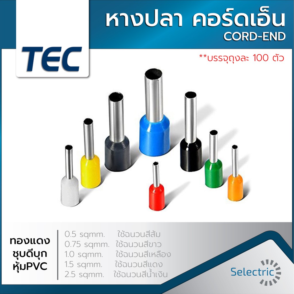 หางปลา CORD-END คอร์ดเอ็น CORDEND Sleeves ยี่ห้อ TEC (ถุงละ 100ตัว)