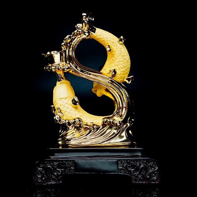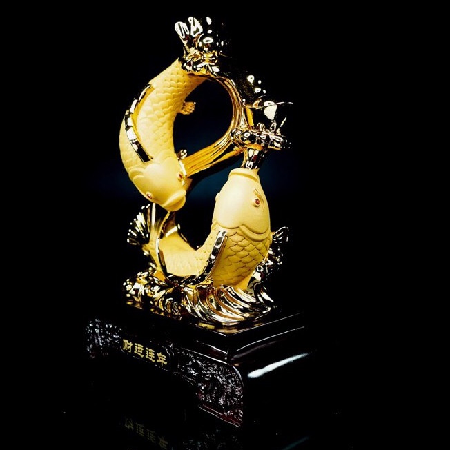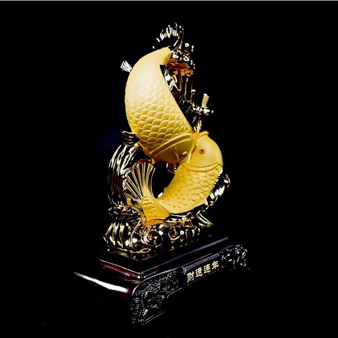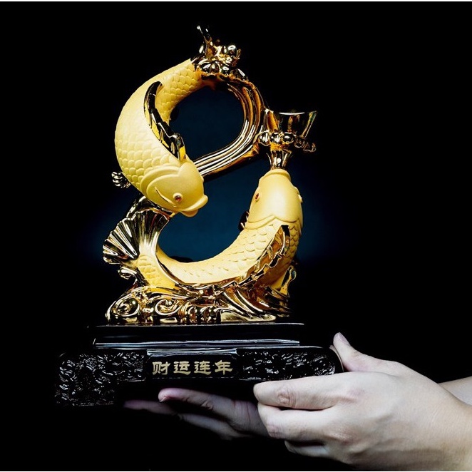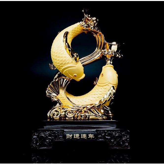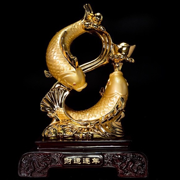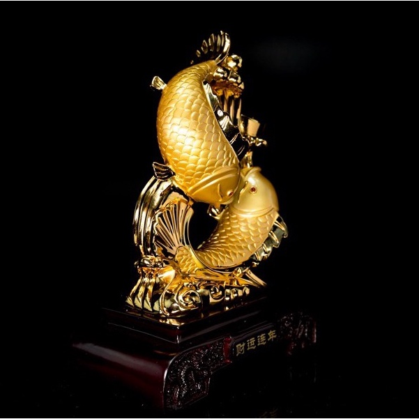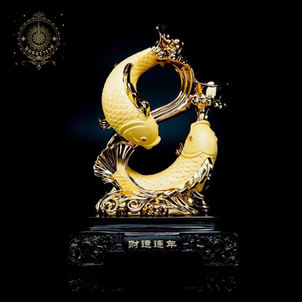 ปลาคู่ ปลาคู่เลข8มงคลฐานไม้ ปลาคู่เสริมดวง ขนาด 28x20x10ซม mongkolromruy มงคลร่ำรวย