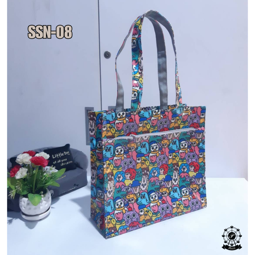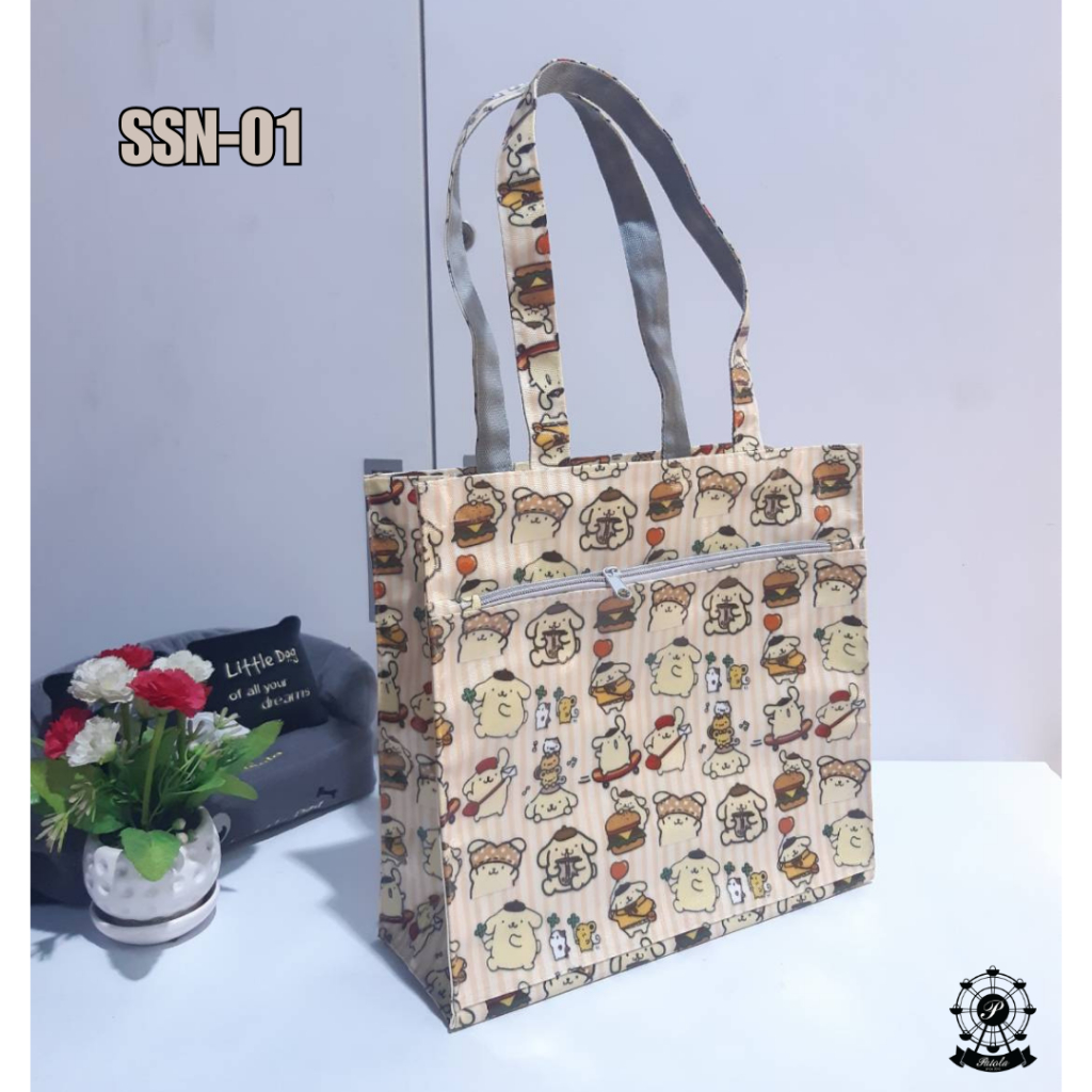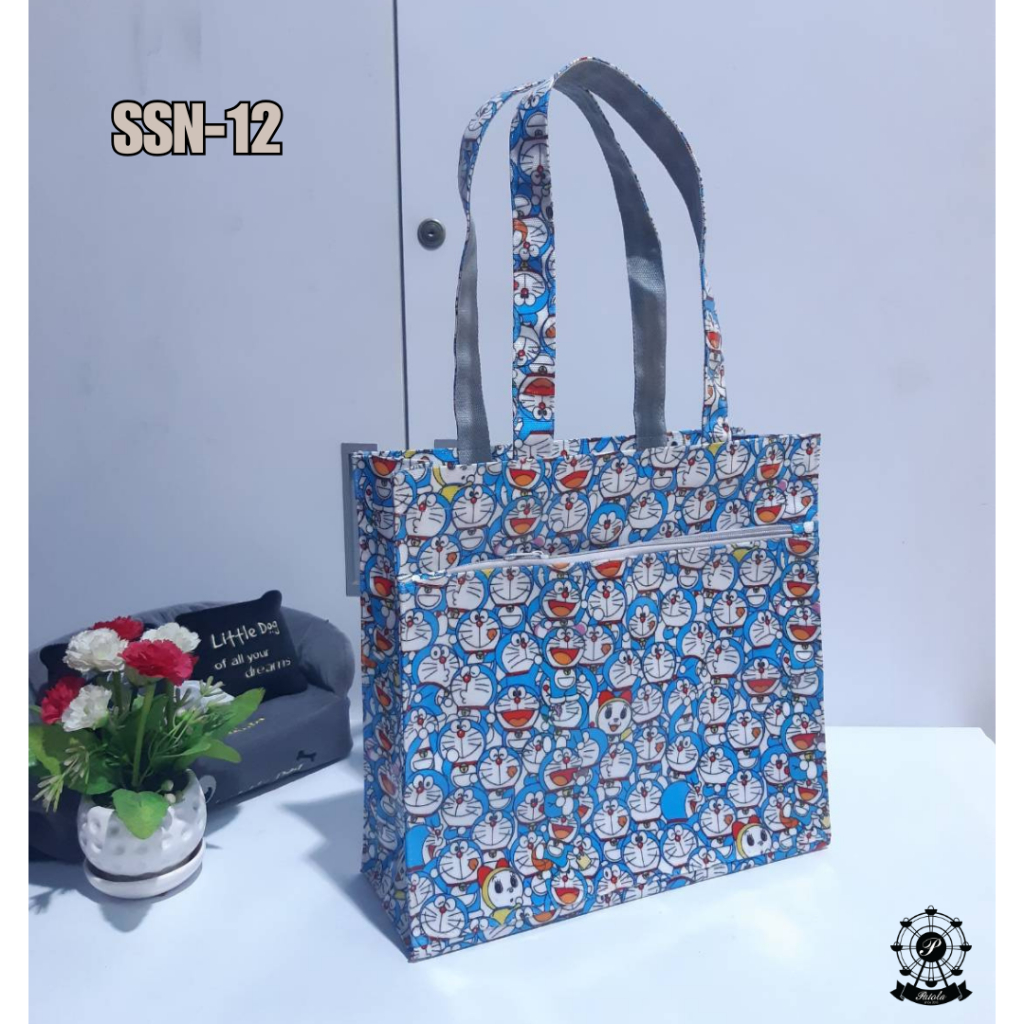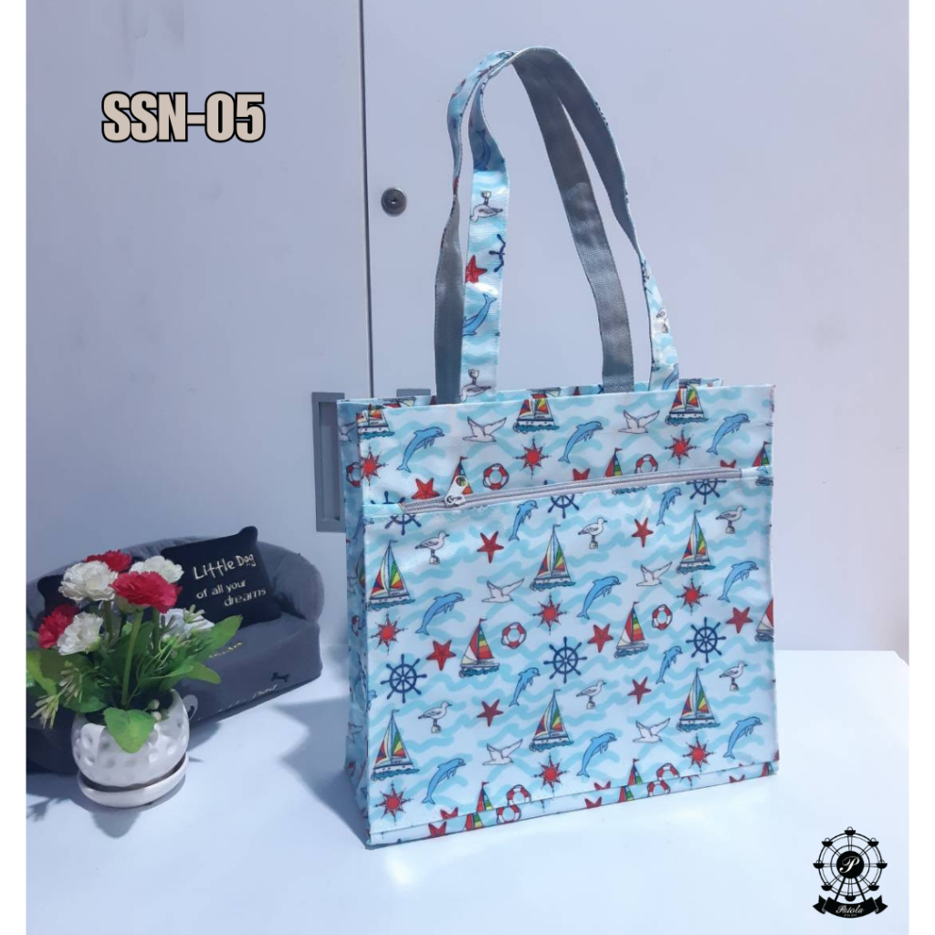 (พร้อมส่ง) กระเป๋าผ้าเคลือบกันน้ำรุ่น SSN กว้าง 12 นิ้ว สูง 11.5 นิ้ว หนา 4 นิ้ว(ก้นกว้าง) มีซิปด้านหน้า สะพานไหล่ได้