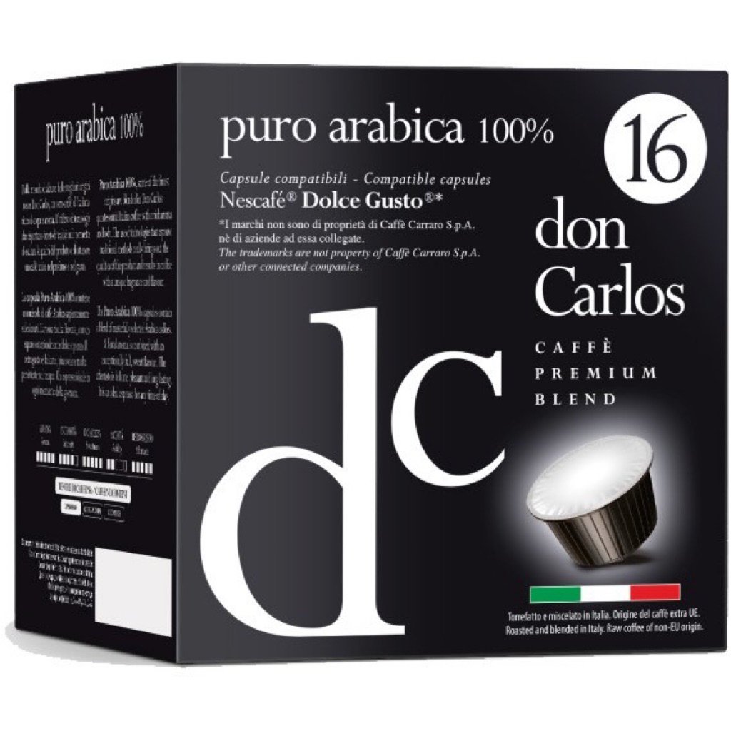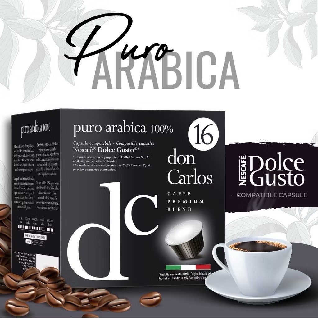 Don Carlos กาแฟอาราบิกาแท้พรีเมียมอิตาลี DOLCE GUSTO แคปซูล (แคปซูลดอลเช่กุสโต้) Puro Arabica 16x