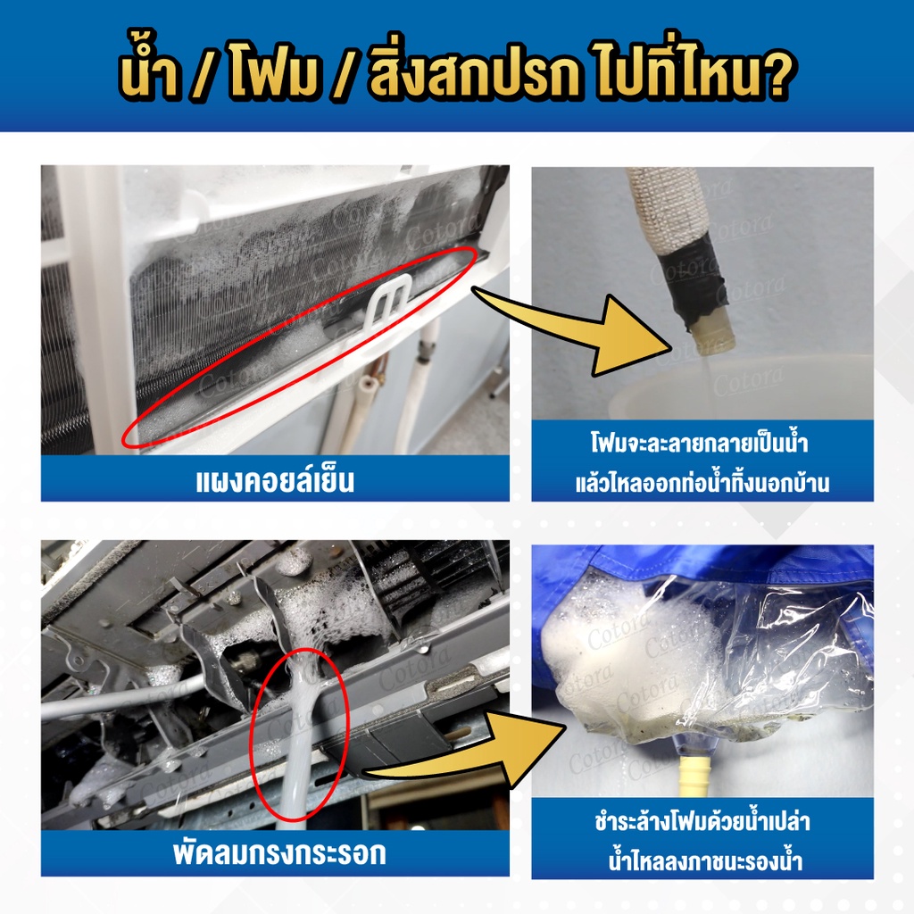 Cotora โฟมล้างแอร์ 3IN1 (ขนาด 500มล.) ล้างแอร์บ้าน แอร์รถ คอยล์เย็น พัดลมกรงกระรอก ลดกลิ่นเหม็นอับ