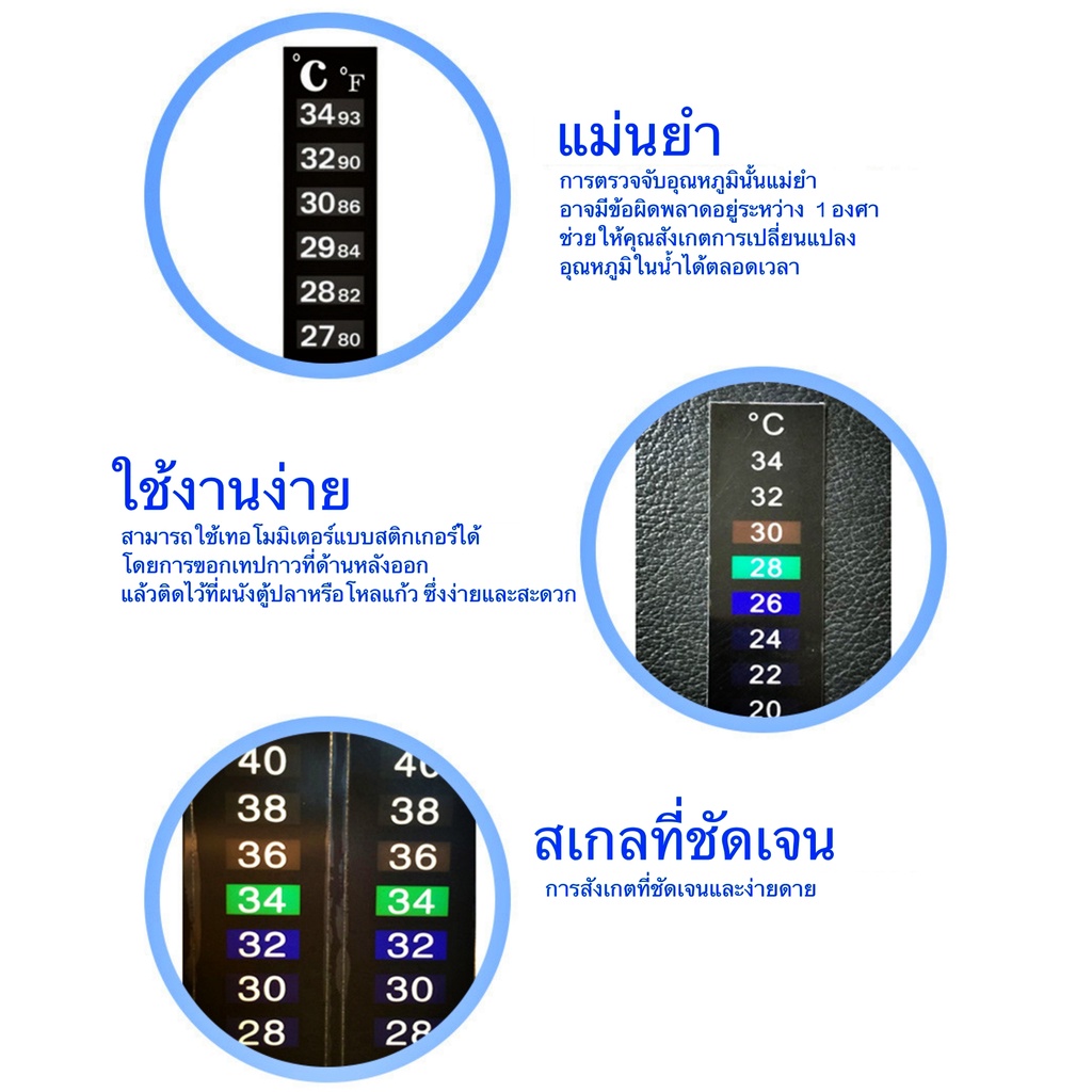 สติกเกอร์วัดอุณหภูมิ เทอโมมิเตอร์วัดอุณหภูมิ สำหรับ คอมบูชา ถังหมักไวน์ ตู้ปลา thermometer stickerช่วงการวัด: 18-34 องศา