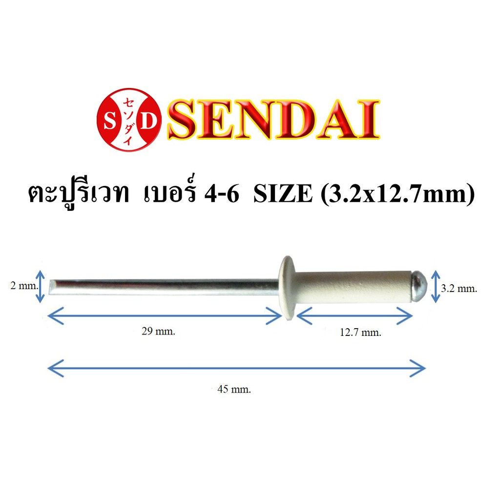 [แบ่งขาย] ลูกรีเวท ตะปูยิงรีเวท หัว 4-6 SENDAI สีดำ,สีขาว,สีน้ำตาล,สีมิเนียม