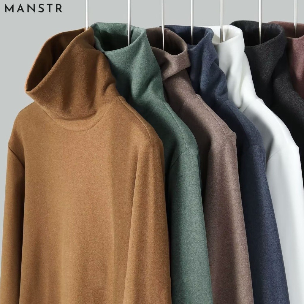 MANSTR M-5XL เสื้อเชิ้ตแขนยาว คอสูง ให้ความอบอุ่น สีกากี สีเทา สีดํา และสีขาว สีกากี แฟชั่นฤดูหนาว สําหรับผู้ชาย ไซซ์