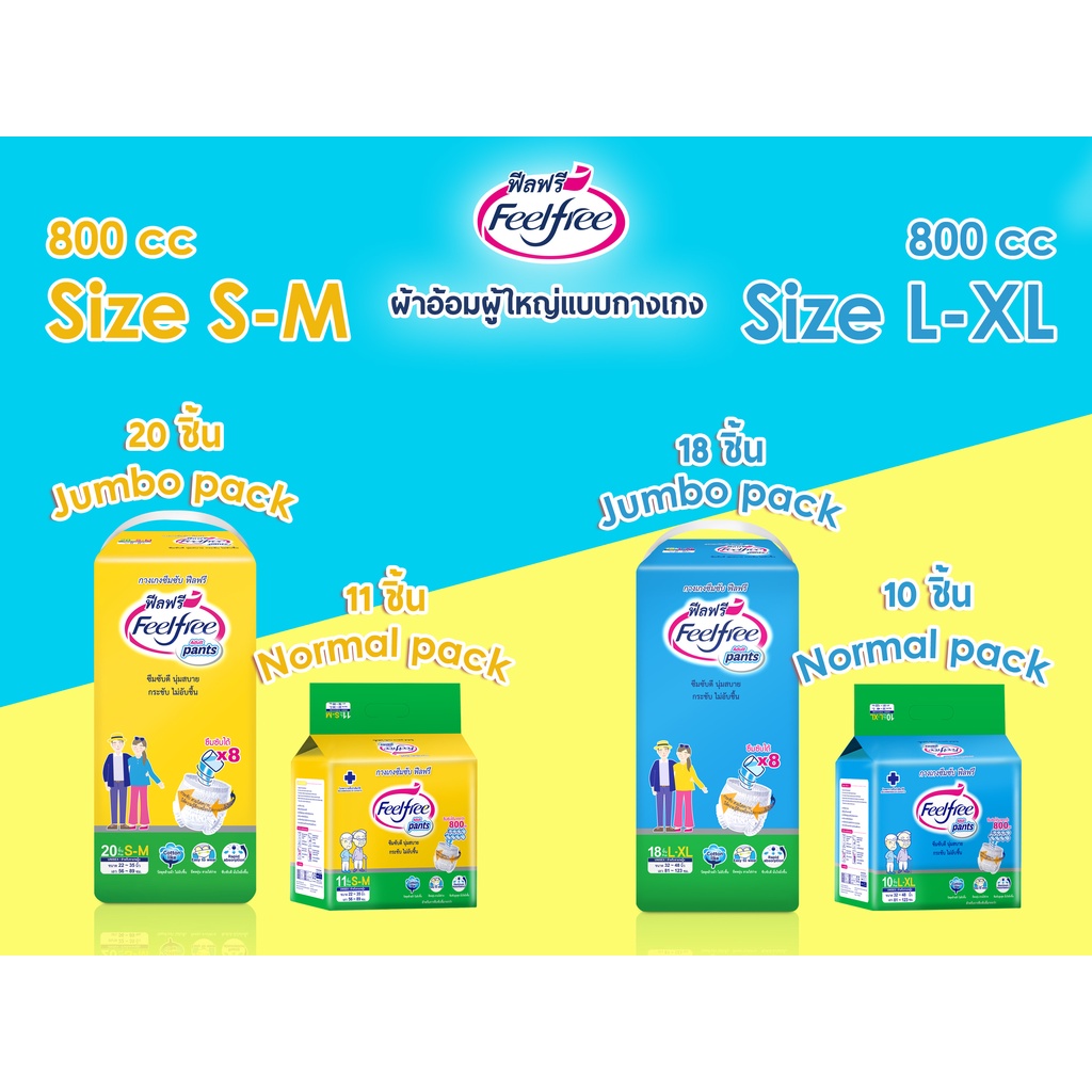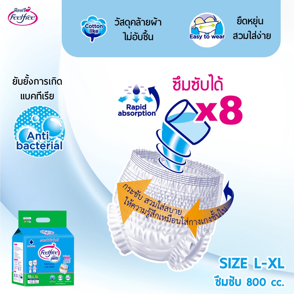 [ขายยกลัง] Feelfree ผ้าอ้อมผู้ใหญ่ฟีลฟรีแบ บกางเกง ไซส์ L-XL10 ชิ้น*6แพ็ค ซึมซับมาก 800CC #C92169