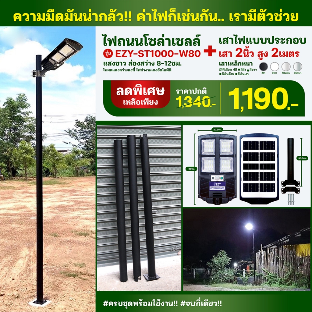 รวมสินค้าครบเซ็ท (รุ่นขายดี) เสาเหล็ก+ไฟโซล่าเซลล์ (ครบพร้อมใช้งาน) มีหลายแบบให้เลือก