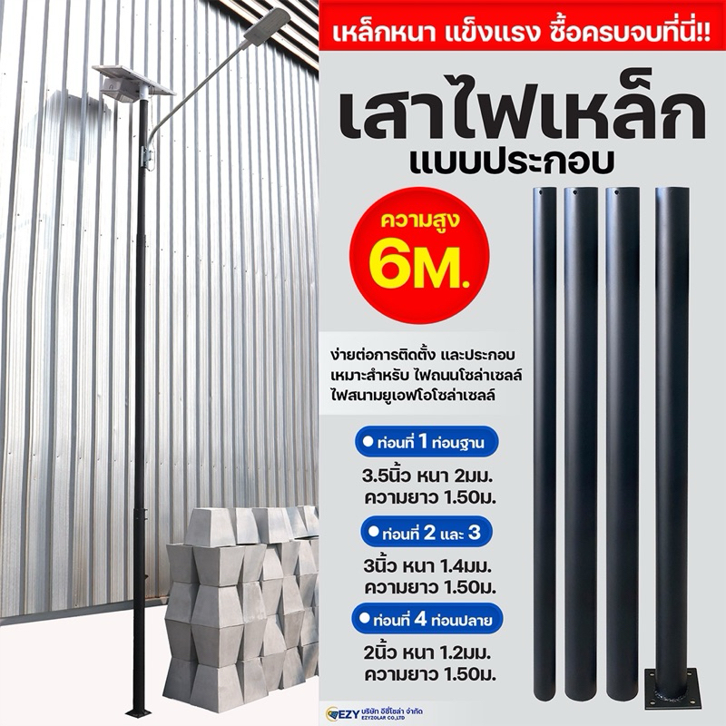 เสาเหล็กทรงเทปเปอร์สูง 5-6เมตร ใช้กับ ไฟสนาม UFO/ไฟถนน ได้ทุกรุ่น ผลิตและจัดหน่ายเอง ราคาถูก