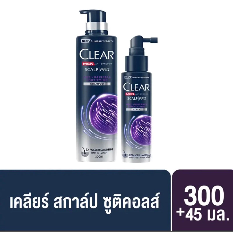 CLEAR MEN (แพ็คคู่) เคลียร์ เซ็ทแชมพูลดผมร่วง แชมพู+เซรั่ม ลดผมร่วง ลดผมบาง เพิ่มวอลลุ่ม