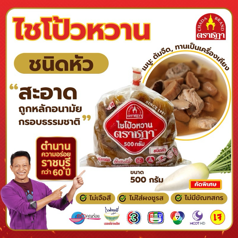 ไชโป้วหวาน ชนิดหัว ตราชฎา 500 กรัม ตำนาน 70 ปี ราชบุรี ไม่ใส่ผงชูรส ไม่ใส่สี ไม่มีสารกรอบ หวานเค็ม
