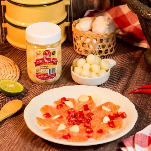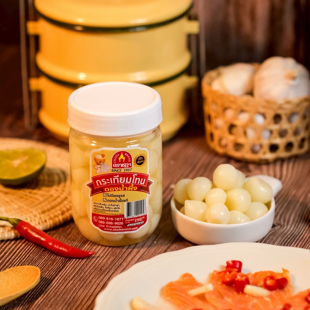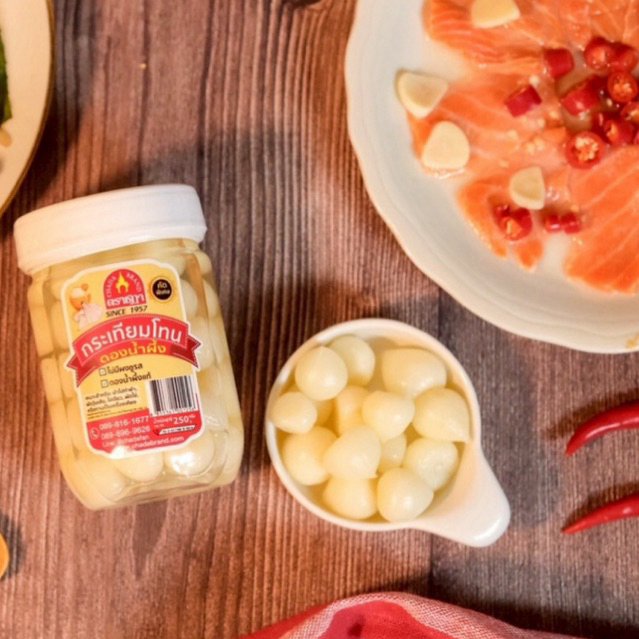 กระเทียมโทนดองน้ำผึ้ง ตราชฎา 250 กรัม นำไปทำยำกระเทียมโทน คอหมูย่าง ผัดวุ้นเส้น ไม่ใส่ผงชูรส กรอบ