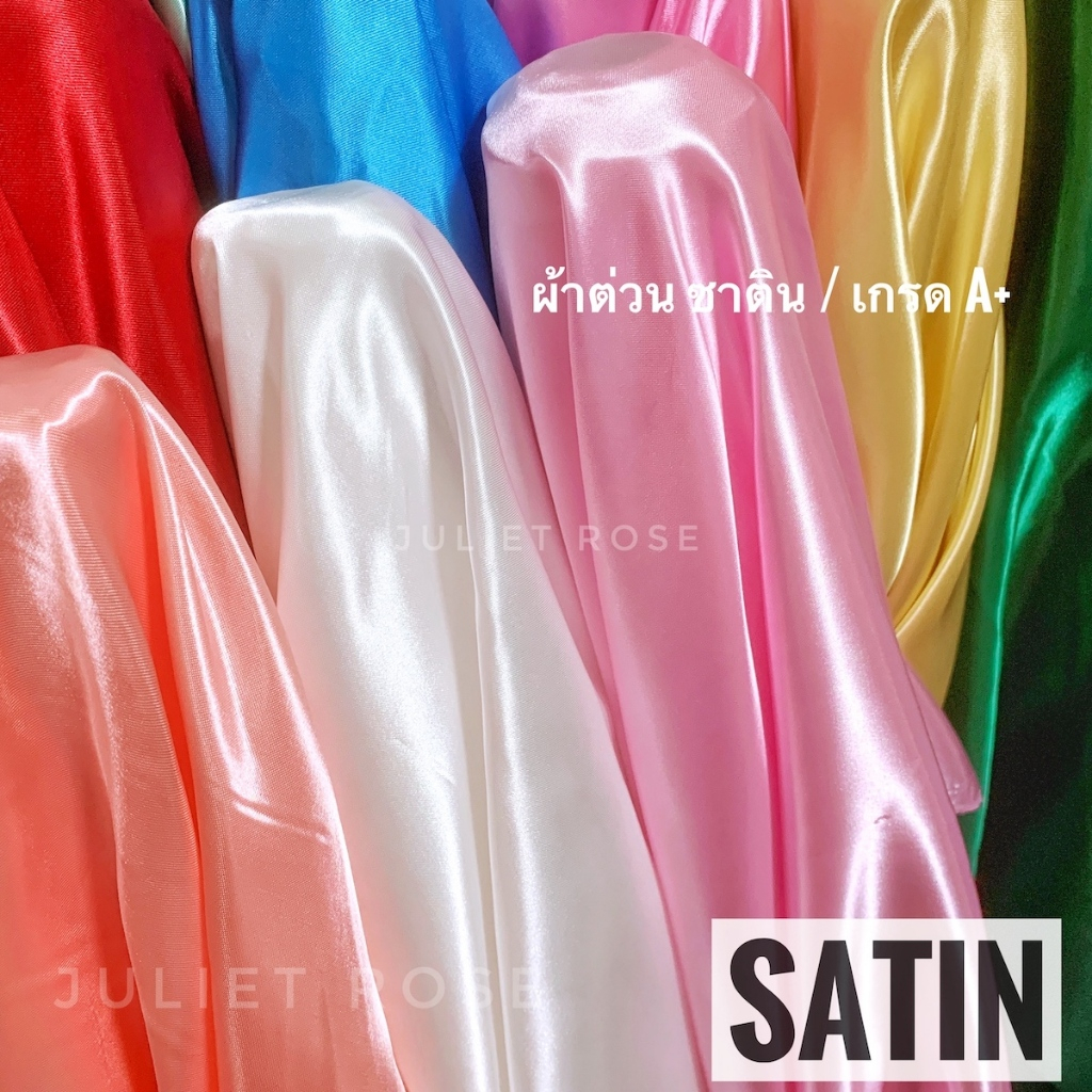 **มีส่งด่วน Delivery** ผ้าซาตินเกรด A ผ้าต่วน ผ้าเครป เนื้อมันเงา ทำสไบ ชุดนอน ประดับเวที ทำฉาก ผูกรั้ว (Full VAT)