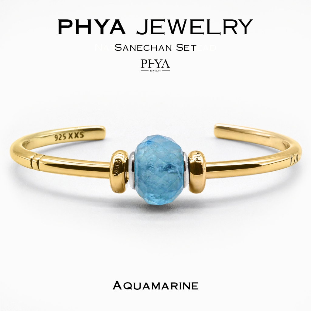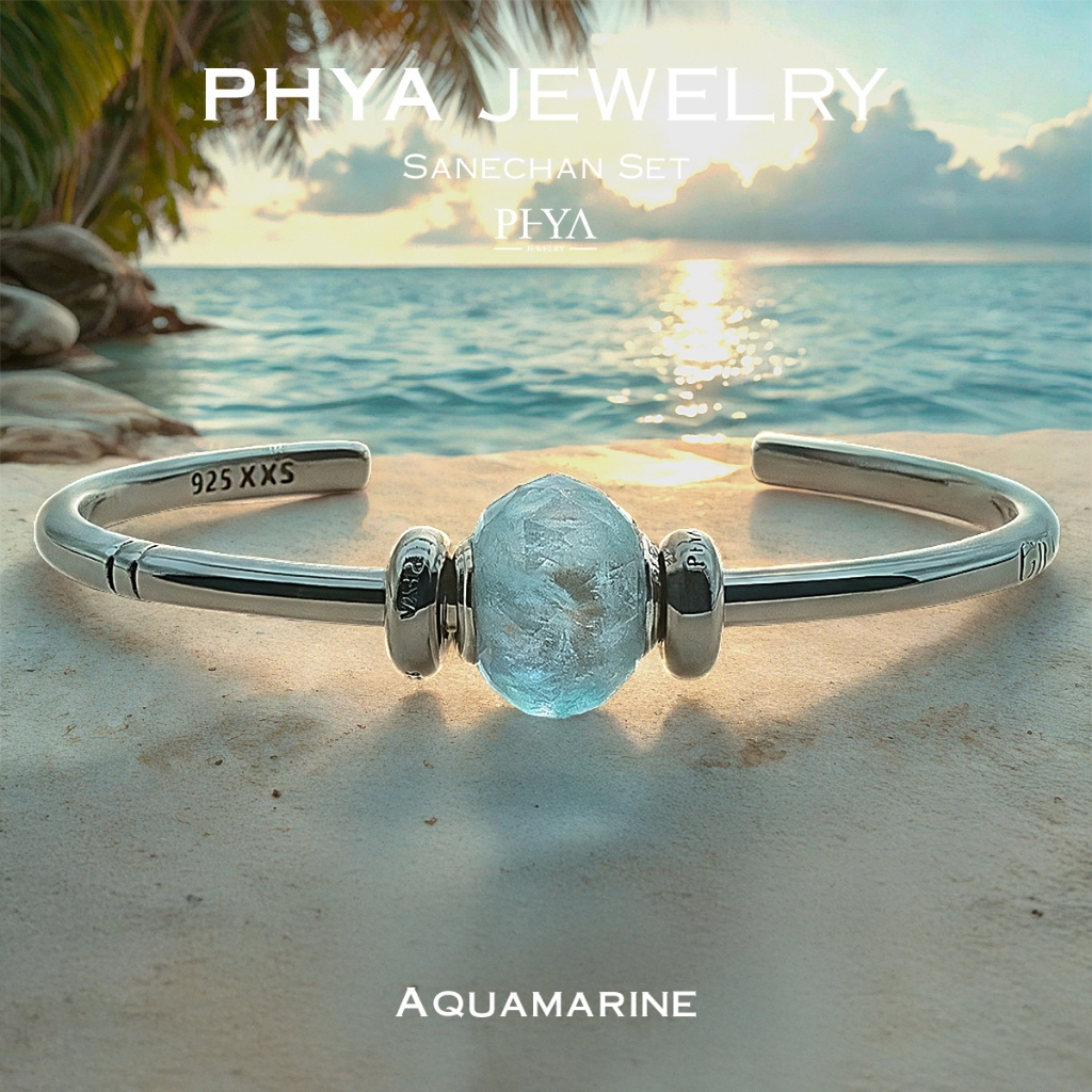 PHYA Sanechan Bangle Set - Aquamarine : กำไลเงินแท้เซ็ตเสน่ห์จันทน์หินอความารีน