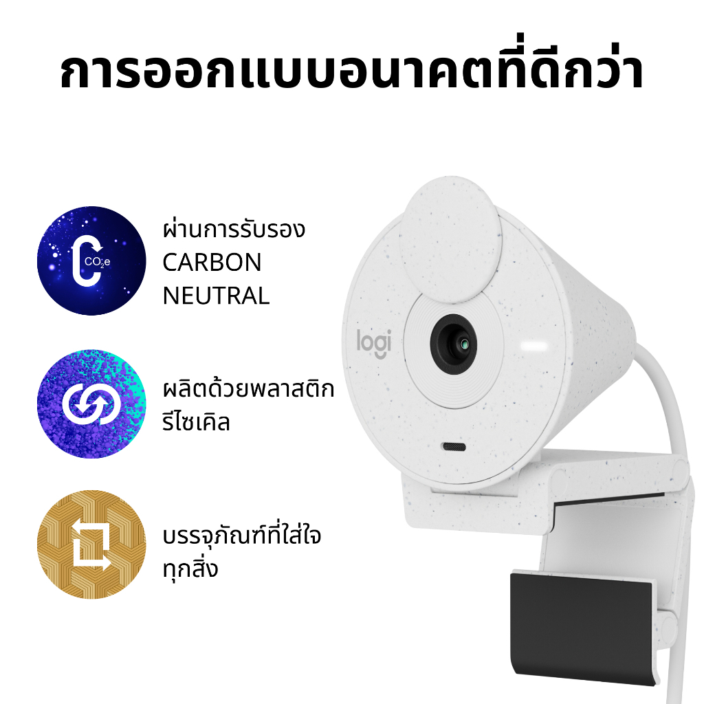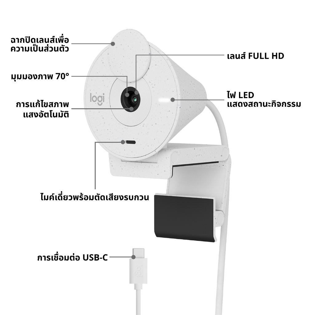 Logitech Brio 300 Full HD webcam กล้องเว็บแคม ความละเอียดสูง พร้อมไมโครโฟนลดเสียงรบกวน รองรับ USB-C