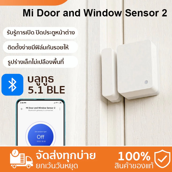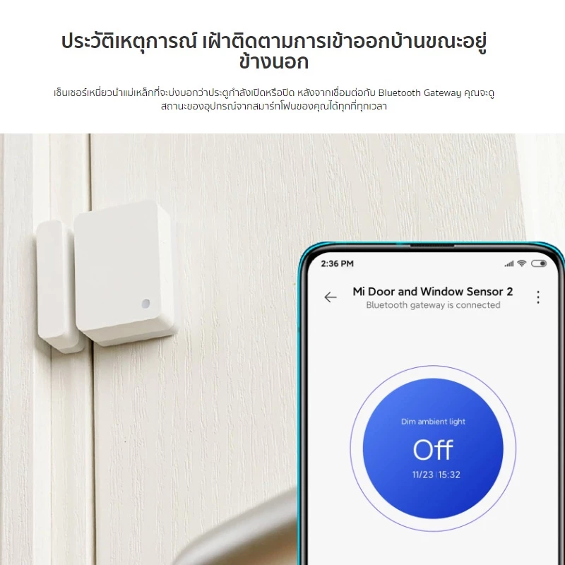 Xiaomi Mi Door and Window Sensor 2 การแจ้งเตือนบนสมาร์ทโฟนที่ซิงค์ | การเตือนเมื่อมีการเปิดทิ้งไว้ | มีเซ็นเซอร์แสงไฟ