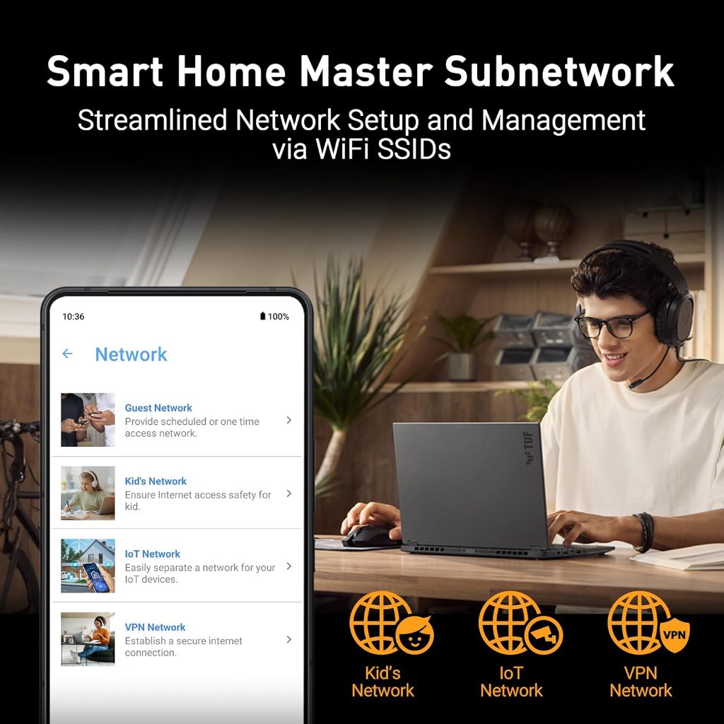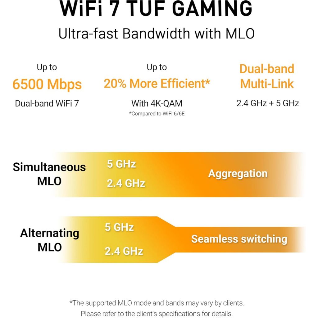 ASUS TUF Gaming BE6500 (TUF-BE6500) Dual Band WiFi 7 (802.11be) Extendable Gaming Router