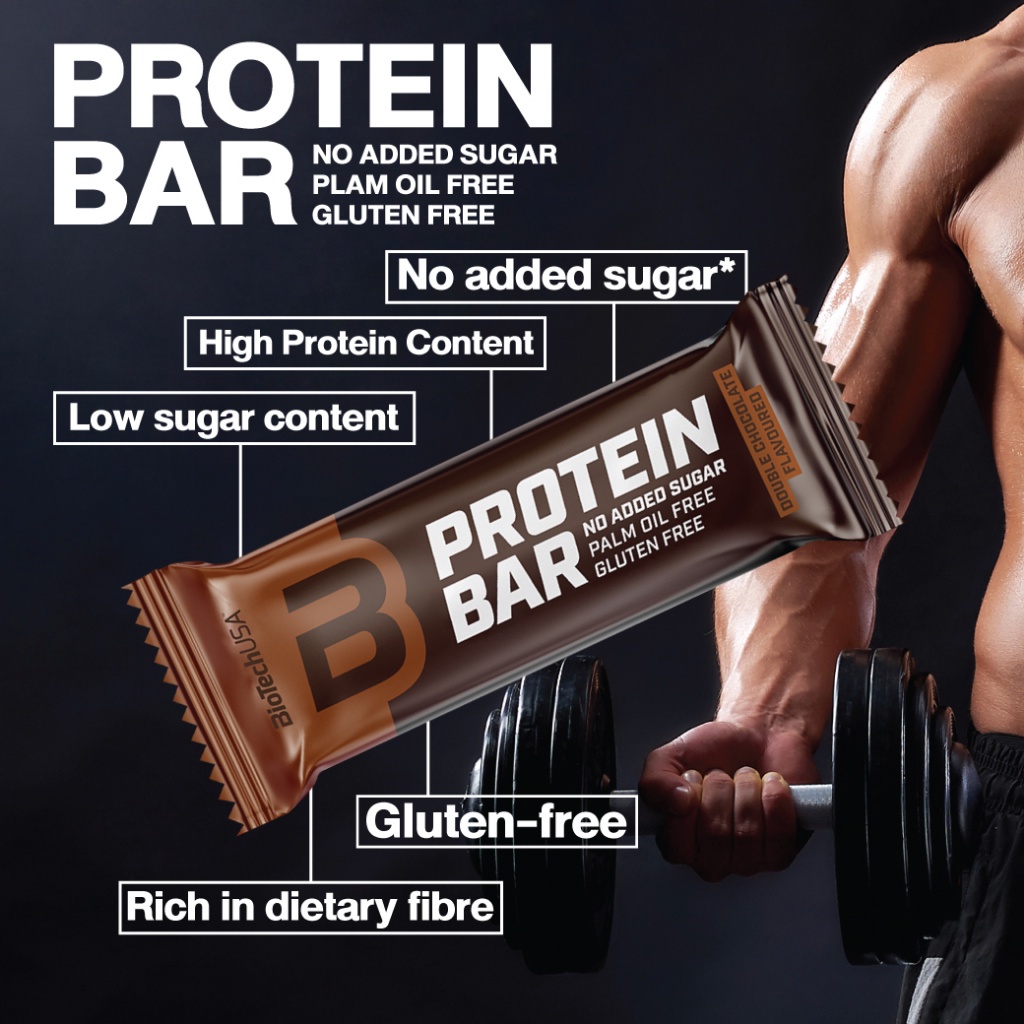 BioTechUSA Protein Bar 70g-DoubleChocolate โปรตีนบาร์รสดับเบิ้ลช็อกโกแลต(ขนมให้โปรตีนสูง)ผสมไฟเบอร์ขนมคลีน