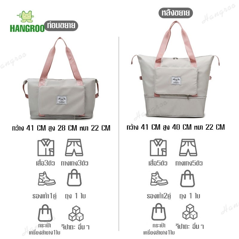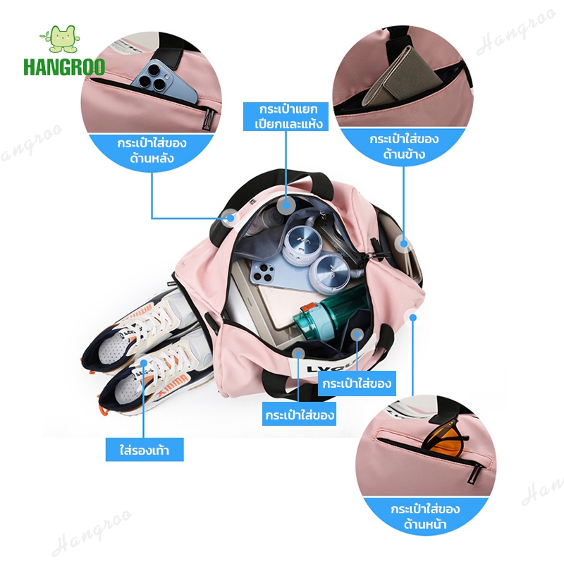 HANGROO BAG3 กระเป๋า สำหรับเดินทาง กันน้ำ ฟิตเนส กีฬา โยคะ แยกแห้ง/เปียก มีช่อง เก็บรองเท้า