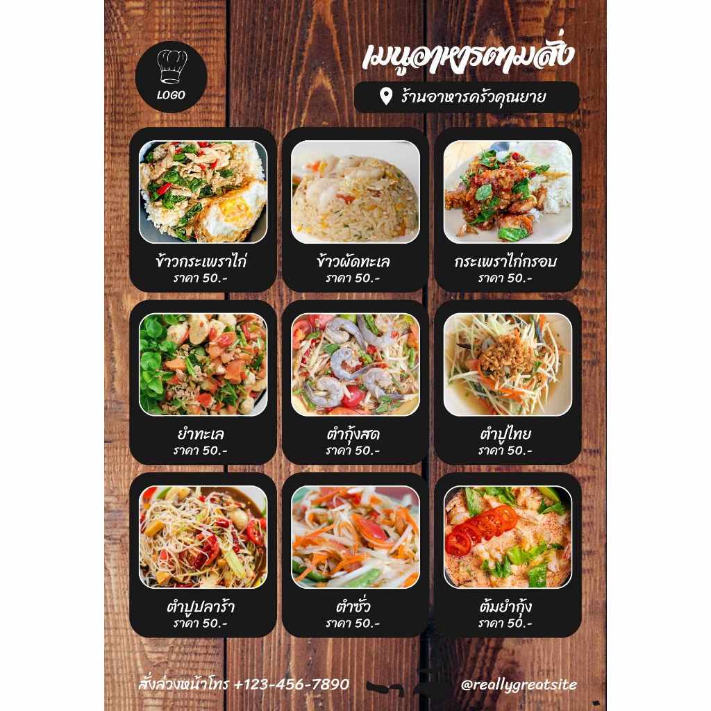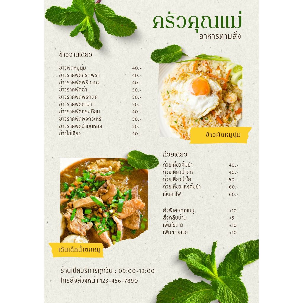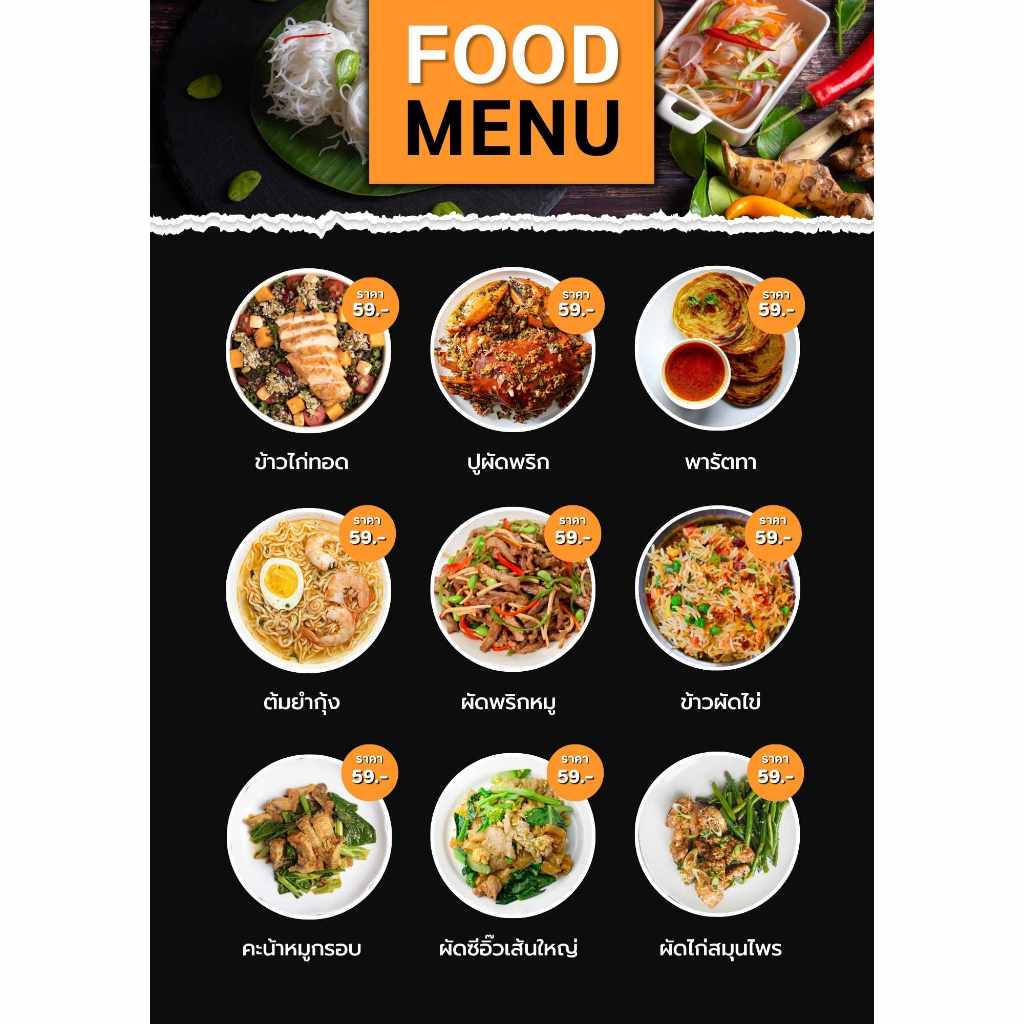ป้ายเมนูอาหารตามสั่ง/ป้ายเมนูอาหารA4เคลือบแข็ง/พลาสวูด 3มิลA4,A3 ทักแชทก่อนกดสั่ง(สามารถแก้ไขรายการเมนูได้)